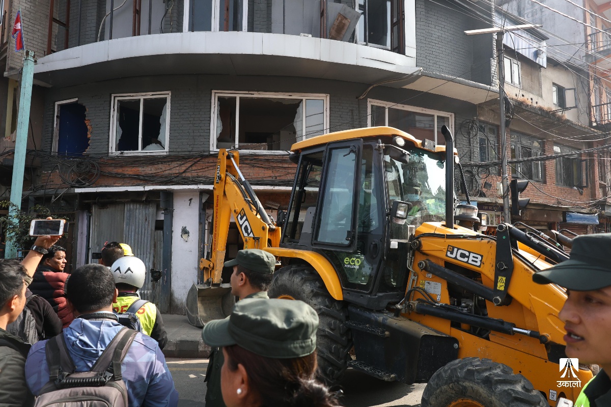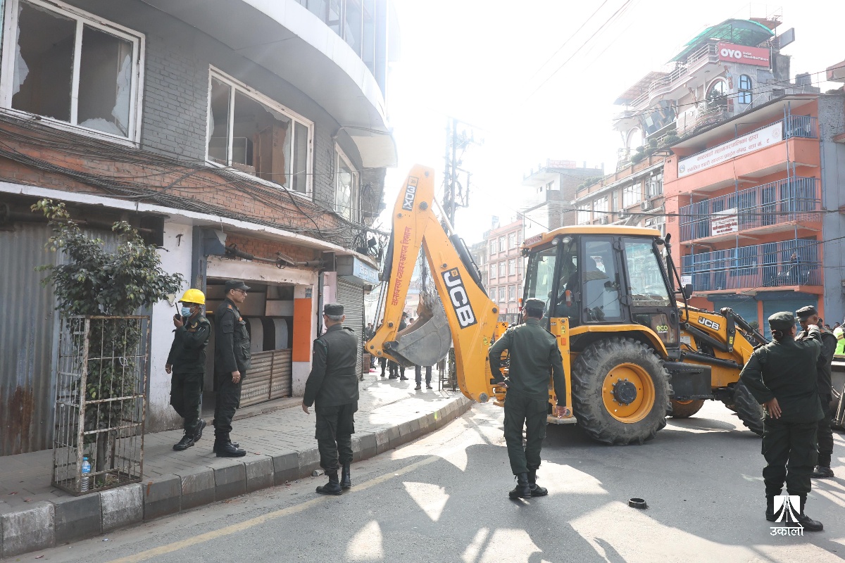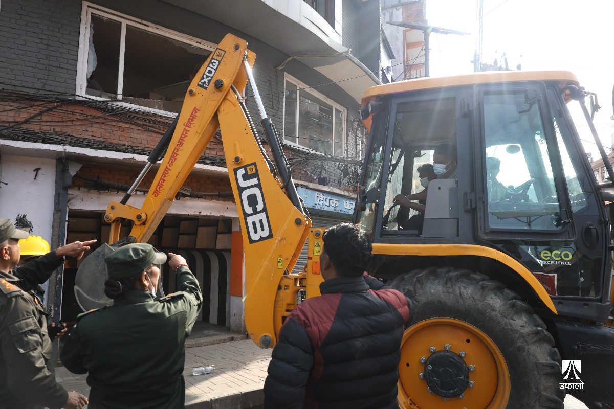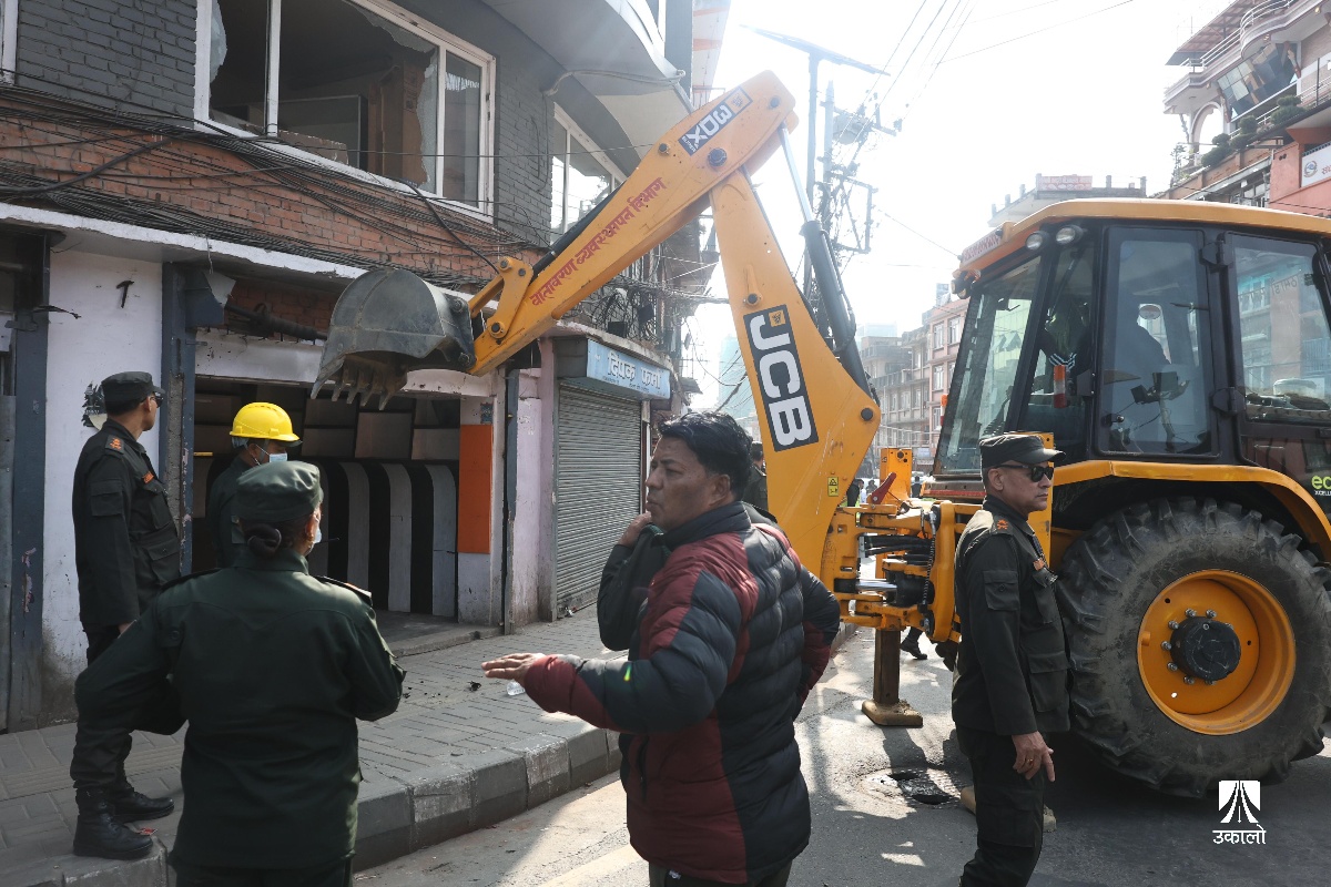 काठमाडौँ महानगरपालिकाको नगर प्रहरीले गौशाला क्षेत्रमा रहेका अनधिकृत संरचनामा डोजर चलाएको छ।