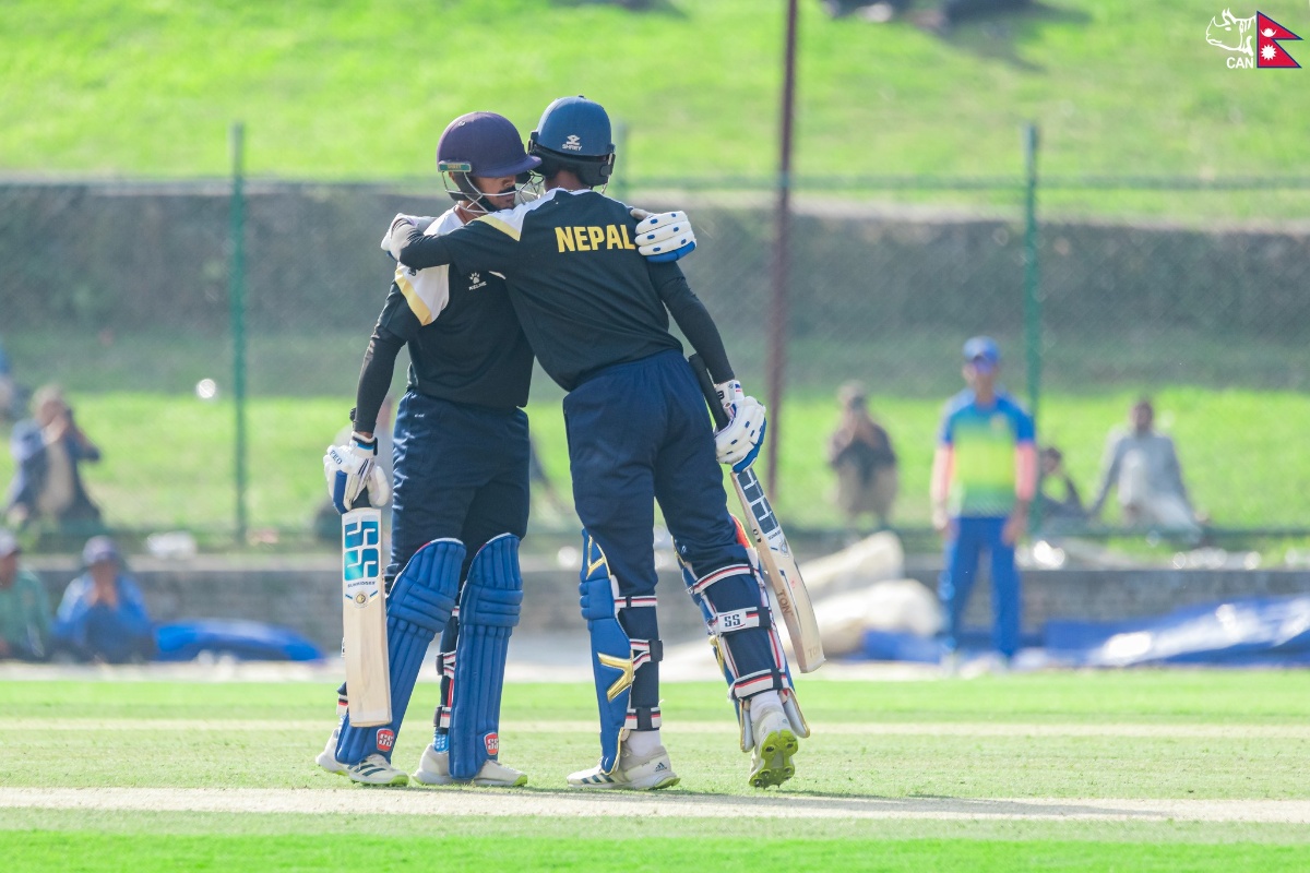 १९२ रनको जवाफी लक्ष्यसहित मैदान उत्रिएको नेपालले ३९.५ ओभरमा मात्र ३ विकेट गुमाएर जित निकालेको हो। नेपालको जितमा ओपनर आकाश त्रिपाठीले ८९ रनको नआउट इनिङ्स खेले। उनले १ छक्का र ७ चौका प्रहार गरे।