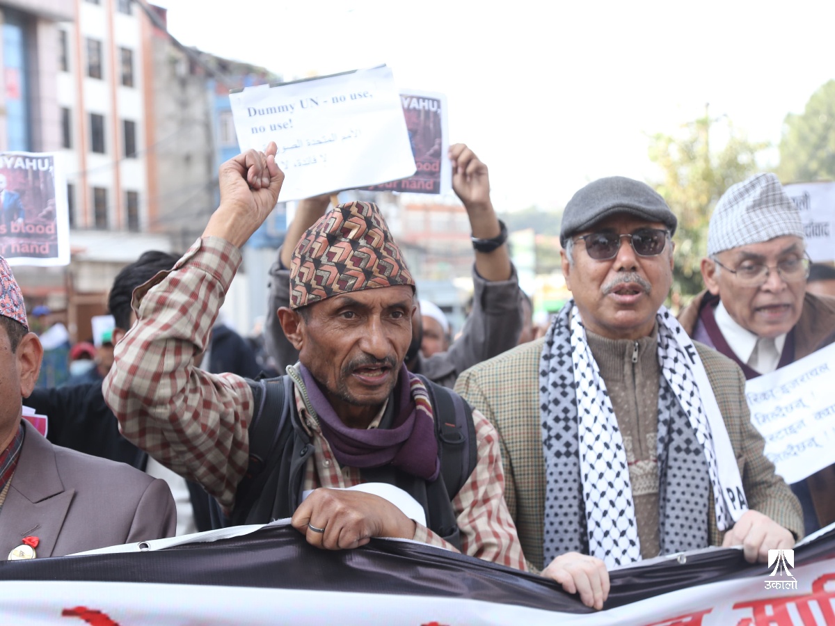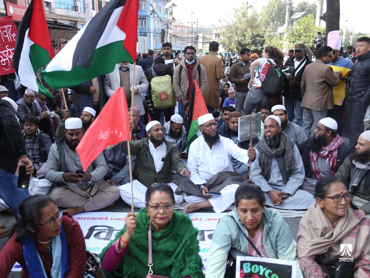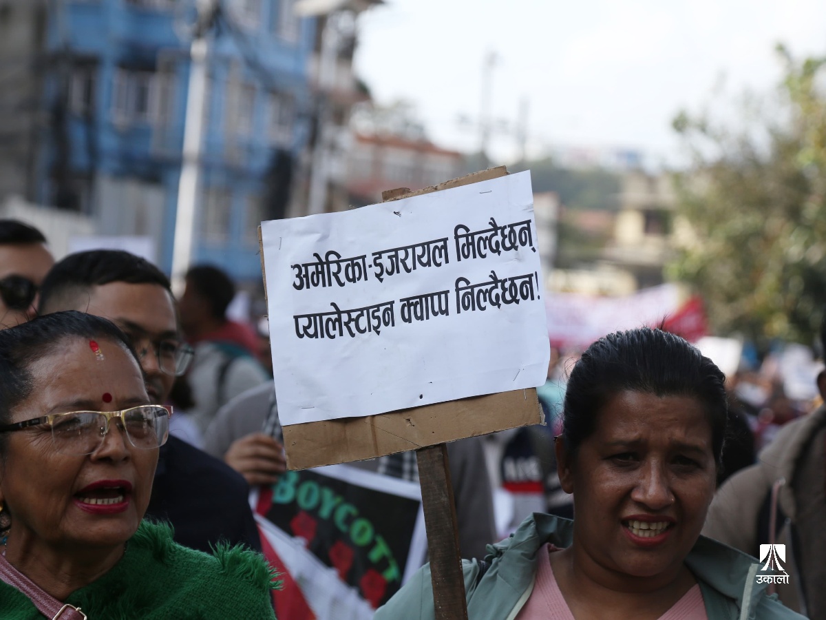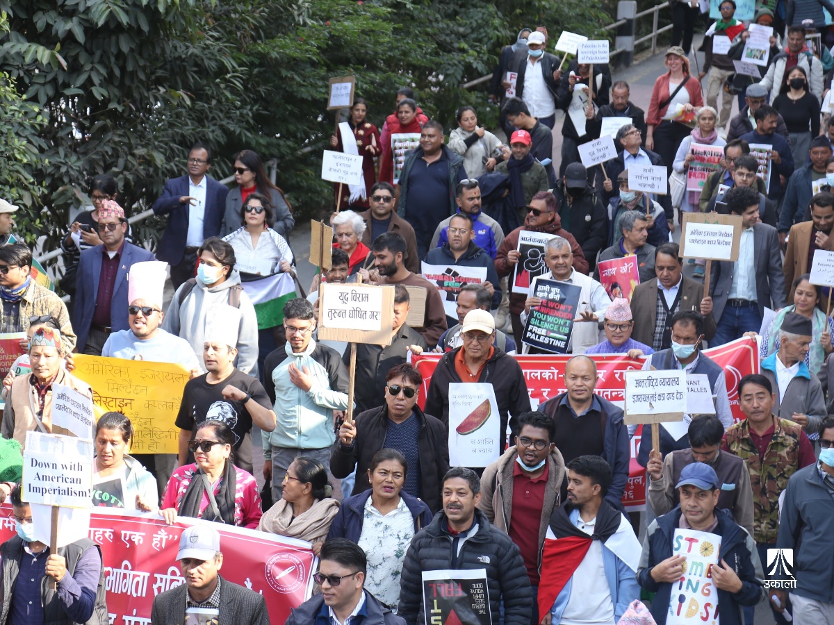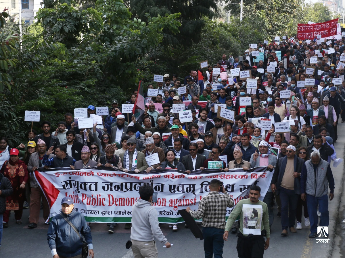 प्यालेस्टिइनमाथि इजरायलबाट भइरहेको आक्रमण रोक्न माग गर्दै नागरिक समाज, राजनीतिक पार्टीका भ्रातृ संगठन तथा अभियन्ताले संयुक्त रूपमा काठमाडौँमा जनप्रदर्शन गरेका छन्।
