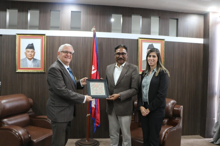 काठमाडौँ– श्रम, रोजगार तथा सामाजिक सुरक्षामन्त्री शरतसिंह भण्डारीसँग नेपालका लागि इजरायली राजदूत शुमलिक एरी बासले शिष्टाचार भेटवार्ता गरेका छन्।