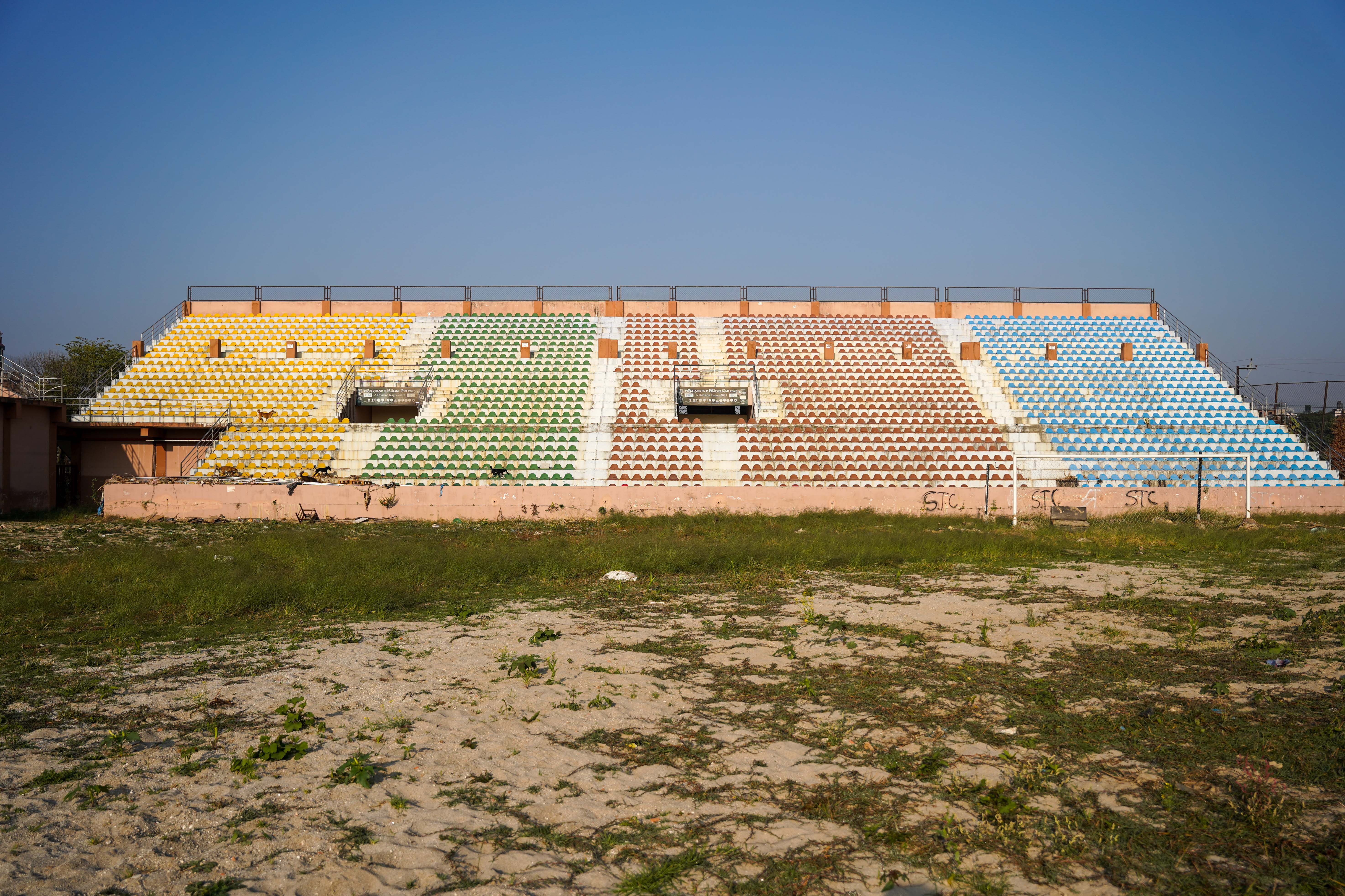 डाँफे जेभीले दुई वर्षमा निर्माण सम्पन्न गर्नेगरी सम्झौता गरे पनि ६ महिनाका दरले ६ पटक म्याद थपेर २०७९ असोज अन्तिममा राखेपलाई हस्तान्तरण गरेको सो रंगशाला मनोहरा खोलाको बाढीको चपेटामा परेको छ ।