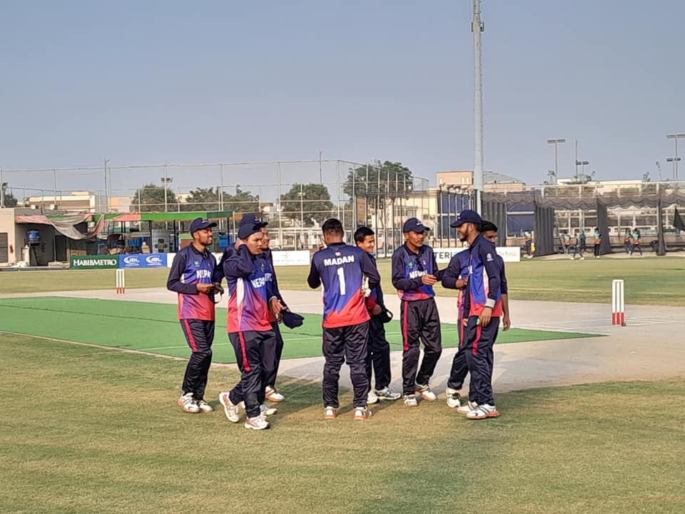 त्यसअघि पहिले ब्याटिङ गरेको नेपालले निर्धारित २० ओभरमा सात विकेट गुमाउँदै ९७ रनको योगफल तयार पारेको थियो। नेपालका लागि दुर्गादत्त पौडेलले सर्वाधिक ४० र रमेश बानियाँले अविजित १७ रन बनाउनुबाहेक अन्य ब्याटरले दोहोरो अंकमा रन जोड्न सकेनन्। पाकिस्तानका लागि माती उल्लाहले तीन र बाबर मुनरिले एक विकेट लिए।