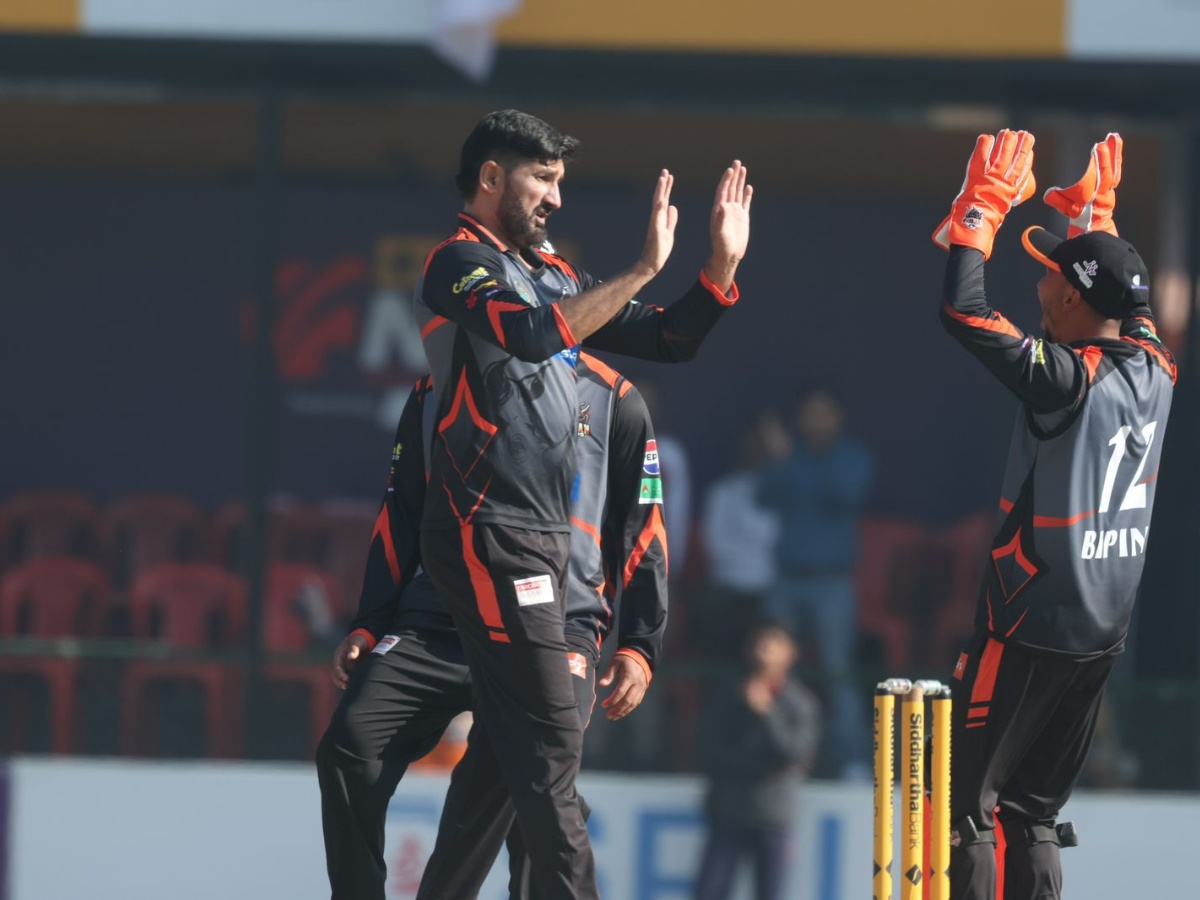चितवनबाट खेलेका पाकिस्तानी बलर सोहेल तान्विरसामु काठमाडाैँका ब्याटर चल्न सकेनन्। उनले पाँच विकेट लिए।