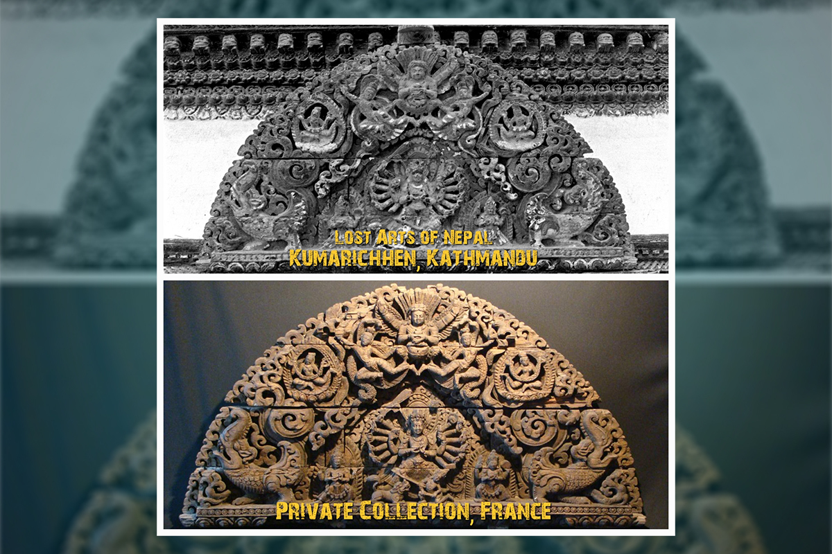 काठमाडौँ– सन् १९८० दशकको मध्यतिर बसन्तपुर दरबार क्षेत्रस्थित कुमारी घरबाट चोरिएको एक पुरातात्त्विक काष्ठ तोरन फ्रान्सको पेरिसस्थित एक व्यक्तिको निजी संग्रहमा पाइएको छ।