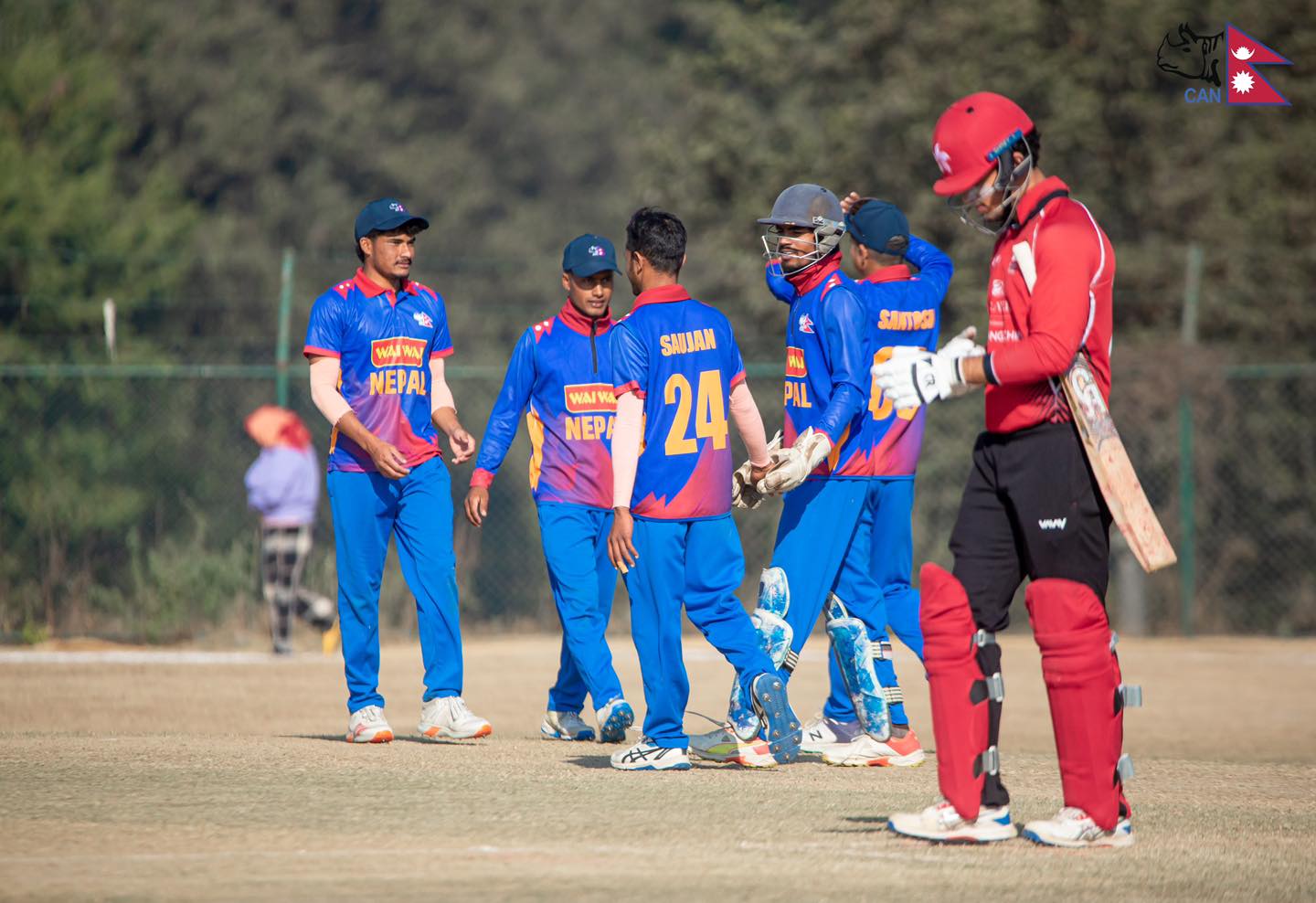 बलिङतर्फ नेपालका कप्तान अभिषेक तिवारी र अफरुद्दिन रेनले समान २/२ विकेट लिए। राजेश बोहरा, दीपक सेराला र सन्तोष यादवको नाममा समान १/१ विकेट रह्यो।