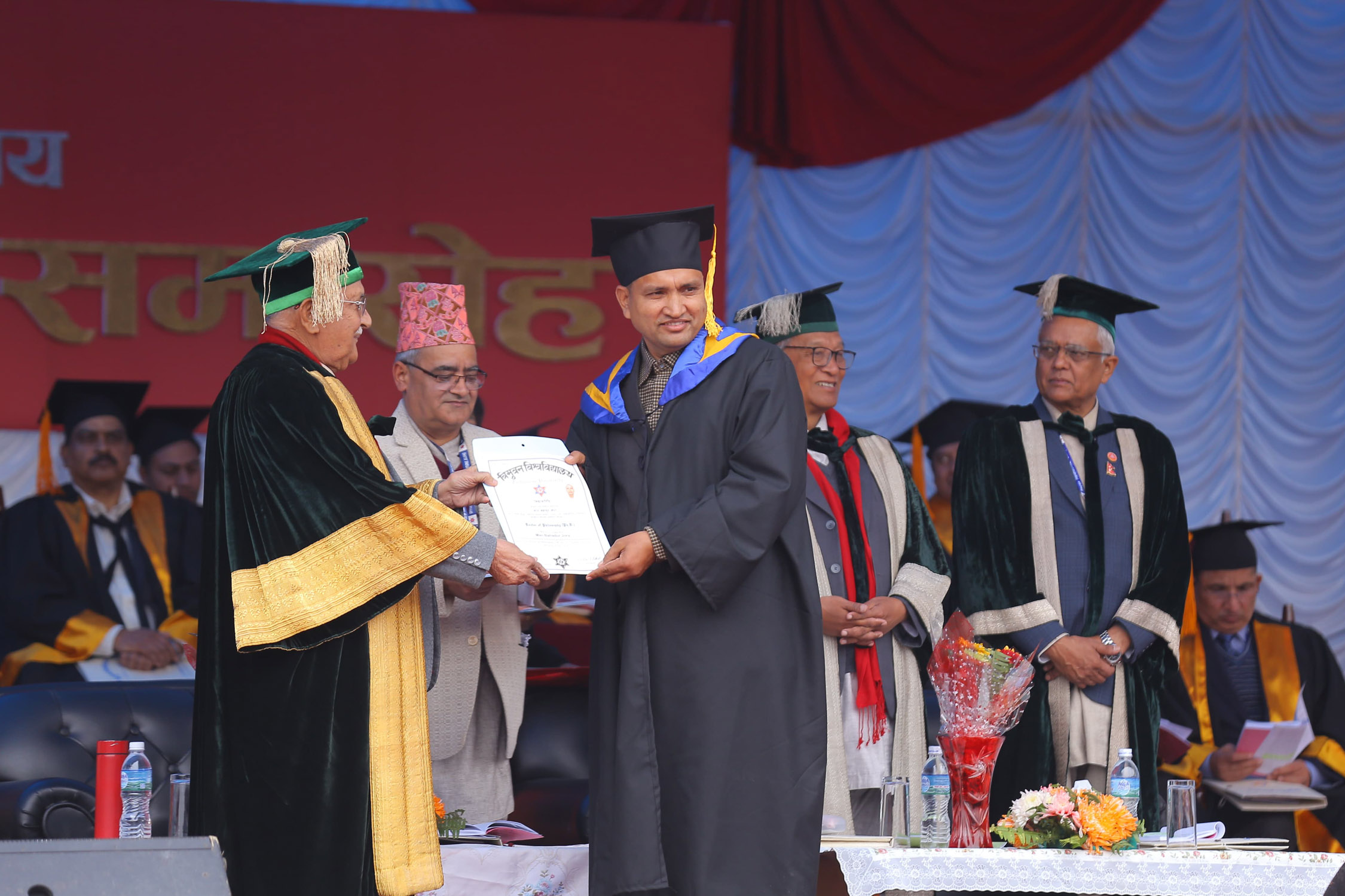 प्रधानमन्त्री तथा त्रिभुवन विश्वविद्यालयका कुलपति केपी शर्मा ओलीले त्रिपुरेश्वरस्थित दशरथ रंगशालामा आयोजित ५०औँ दीक्षान्त समारोहमा विद्यावारिधि गर्ने र सर्वोत्कृष्ट अंक प्राप्त गर्ने विद्यार्थीलाई प्रमाणपत्र प्रदान गरे।
