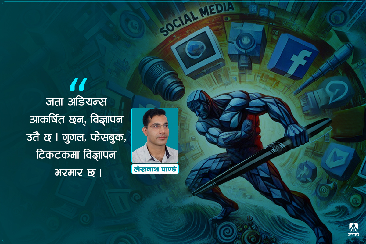 नेपाली पत्रकारिता अहिलेको हालतमा पुग्नुमा प्रविधि मात्र एक्लो जिम्मेवार छैन। एक कोणबाट हेर्दा प्रविधिकै सहारामा पत्रकारिता जेनतेन टिकेको देखिन्छ। अडियन्ससम्म ‘सामग्री’ पुर्याउन सामाजिक सञ्जाल सहयोगी बनेका छन्। अन्यथा, सञ्जालमा बसाइँ सरेका अडियन्सलाई पत्रकारितामा फर्काउन सजिलो छैन।