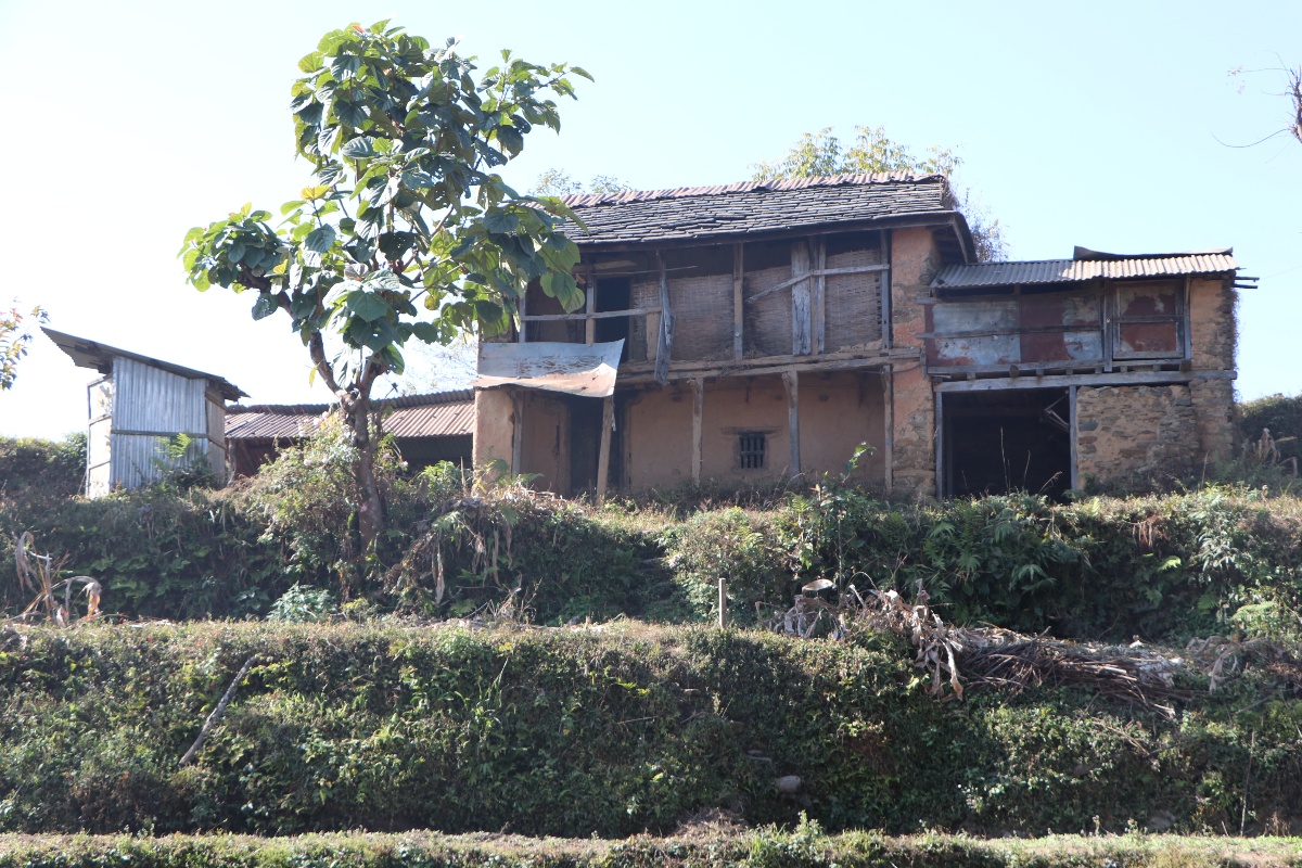 लमजुङ– छेवैको घर जीर्ण छ। आँगन घाँसे मैदान जस्तै बनेको छ। भत्किन लागेको ढोकामा ताल्चा झुन्डिएको छ।