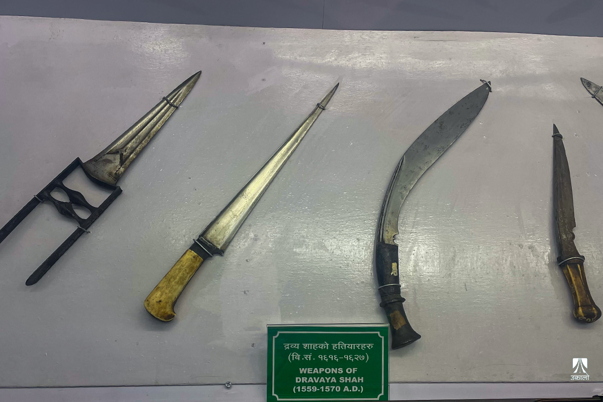 ऐतिहासिक ग्यालरी कक्षमा द्रव्य शाह, पृथ्वीनारायण शाह, सुरप्रताप शाहदेखि राणाकालीन समयमा प्रयोग भएका हातहतियार प्रदर्शनीमा राखिएको छ।