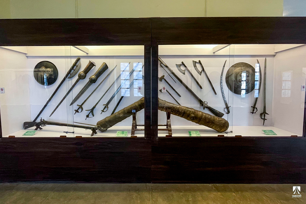 पृथ्वीनारायण शाहको फलामे कबजदेखि रणबहादुर शाहको खेलौना तोप, नेपाल–तिब्बतबीचको पहिलो युद्धमा जफत गरिएको छालाका तोप, मिर्कासिमी फौजबाट जफत गरिएको हातहतियार लगायतका सामग्री प्रदर्शनीका आकर्षण हुन्।
