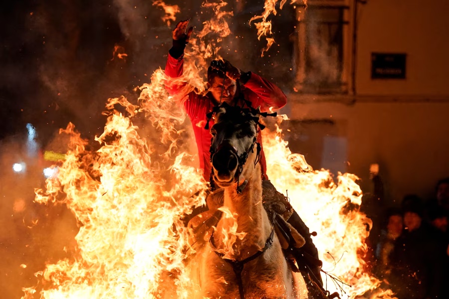 सेन्ट एन्थोनी दिवसको पूर्वसन्ध्यामा आगोको ज्वालाका बीच मानिसहरूले आ-आफ्ना घोडा कुदाउँदै विशेष रूपमा यो पर्व मनाउँछन्। सेन्ट एन्थोनीलाई जनावरका संरक्षक मानिन्छ।