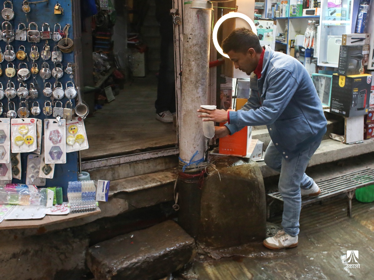 काठमाडौँ– राष्ट्रिय गौरवको परियोजनाका रूपमा रहेको मेलम्ची खानेपानीको वितरण व्यवस्थित नहुँदा उपत्यकाको ठमेल, महाबौद्धलगायतका क्षेत्रमा दिनहुँ पानी खेर गइरहेको छ। खानेपानी वितरणका लागि जडान गरिएको पाइप घर–घरमा जडान नहुँदा पानी खेर गएको हो। काठमाडौँ उपत्यका खानेपानी लिमिटेडले समयमा मिटर जडान नगरिदिँदा हजारौँ लिटर पानी खेर गइरहेको स्थानीय बताउँछन्। पानी खेर जाँदा महाबौद्ध क्षेत्रमा पसल सञ्चालन गर्ने व्यापारीले सास्ती खेप्नु परेको छ। पसलअगाडि पानी जम्मा हुने र सफा गरी रहनुपर्ने अवस्था आएको व्यापारीको भनाइ छ। मेलम्ची खानेपानी परियोजनाले काठमाडौँ उपत्यकामा दैनिक १७ करोड लिटर पानी आपूर्ति गर्दै आएकोमा कुनै क्षेत्रमा खानेपानी खेर गएको छ भने कतै पानीको अभाव उस्तै छ। हेर्नुहोस् तस्वीरहरू: