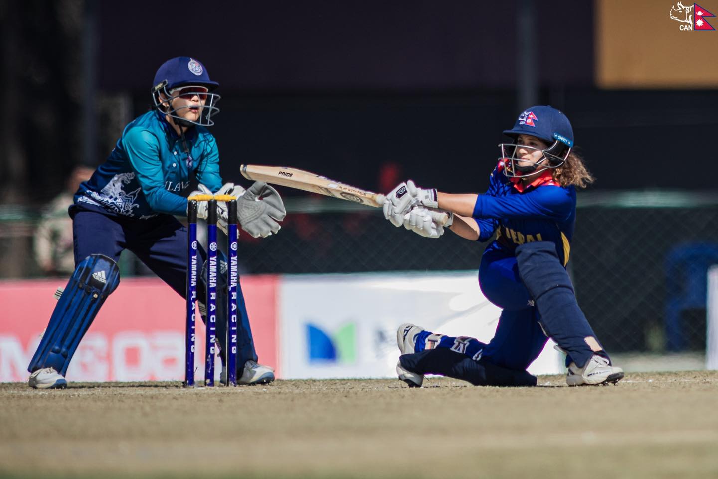 ओपनर सम्झना खड्काले रनको खाता खोल्न नसक्दा ममता चौधरीले २ रन जोडिन्। पूजा महतो ६ तथा रुविना ४ रनमा आउट भए। कविता जोशी ८ तथा सीता राना मगर २ रनमा आउट भए।