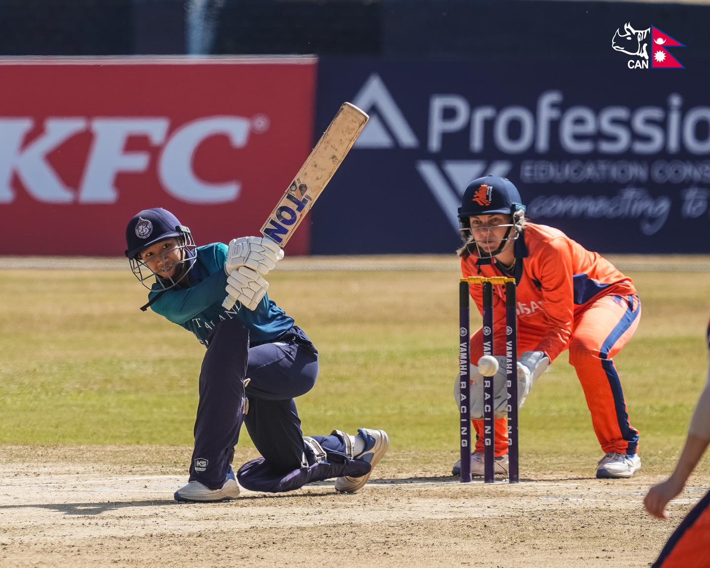 कीर्तिपुरस्थित त्रिवि मैदानमा सोमबार भएको खेलमा थाइल्यान्डले दिएको ८७ रनको सामान्य लक्ष्य पछ्याएको नेदरल्यान्ड्स १५.५ ओभरमा ६९ रनमा ‘अलआउट’ भयो।