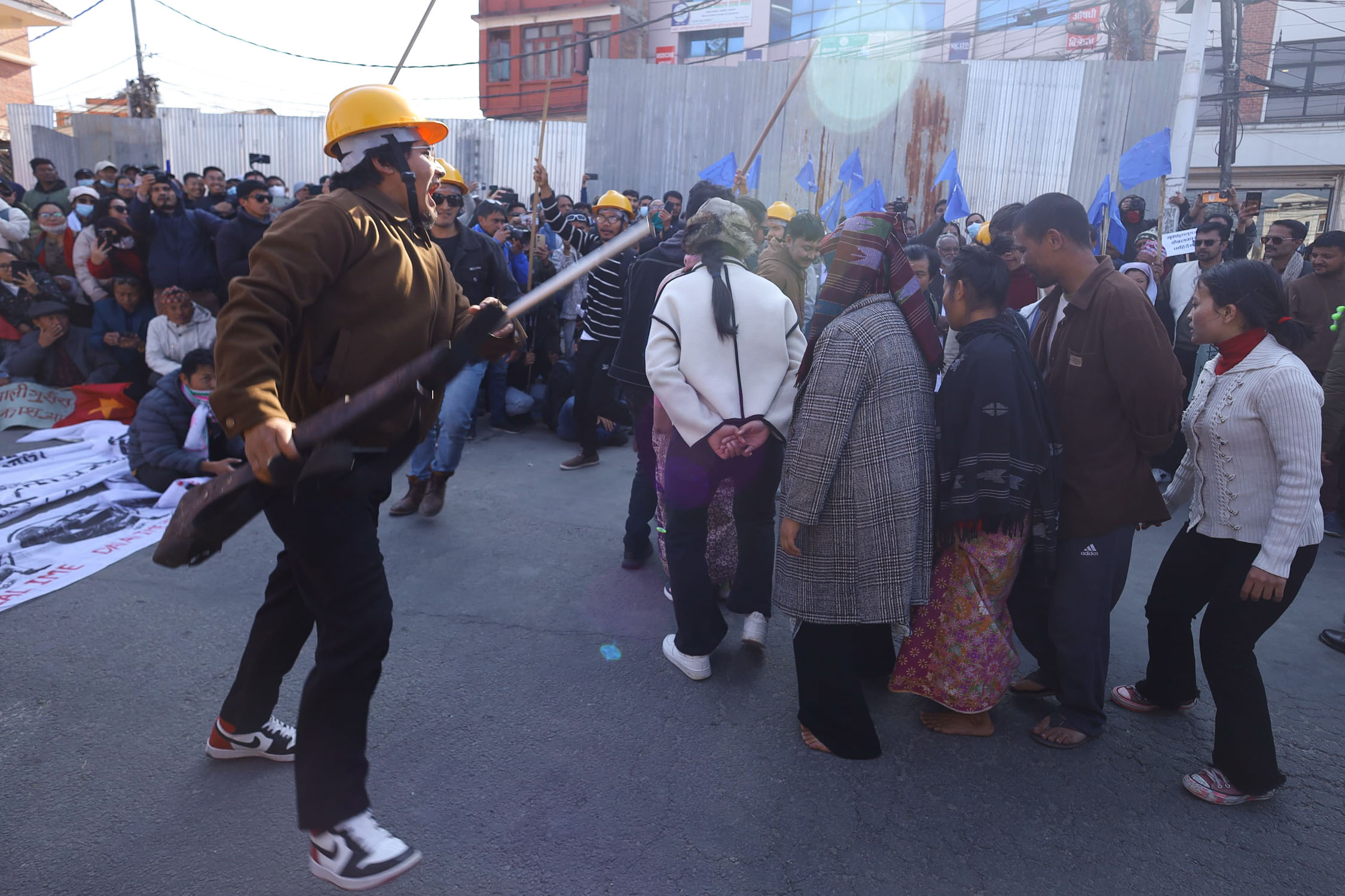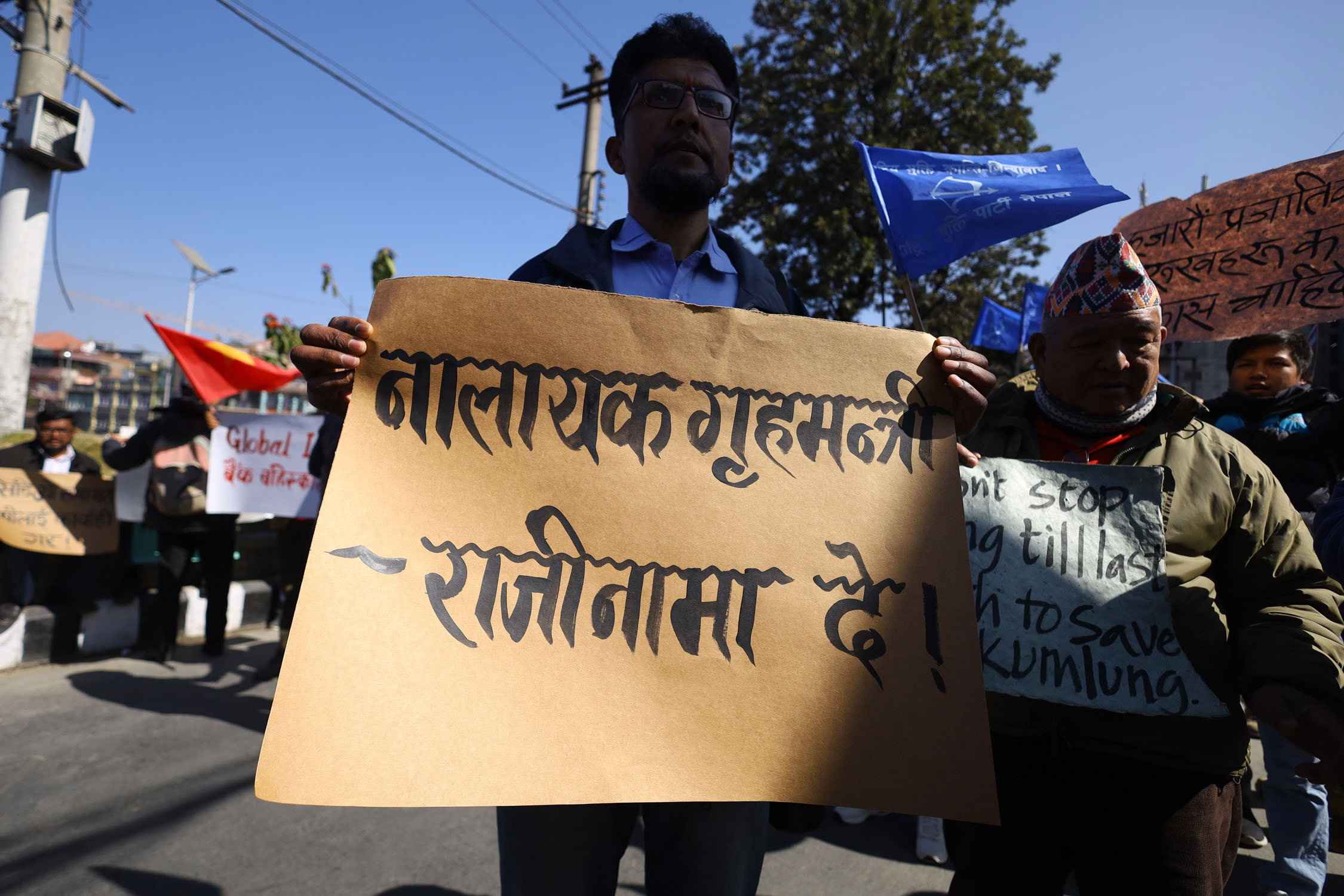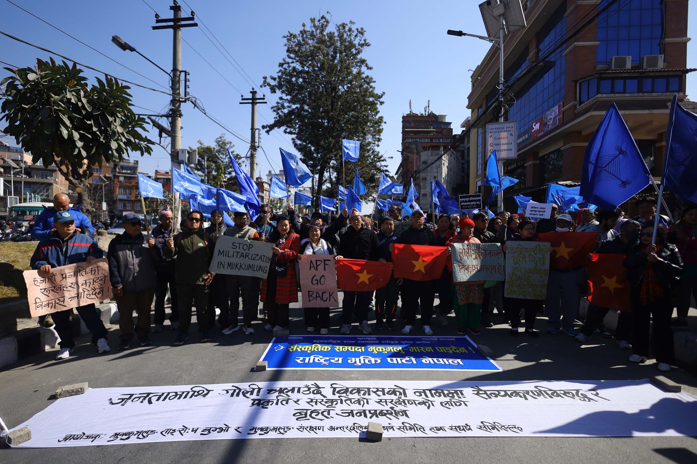 मुक्कुमलुङ अतिक्रमणविरुद्ध काठमाडौँको माइतीघरमा विरोध प्रदर्शनका साथै सडक नाटक मञ्चन गरिएको छ।