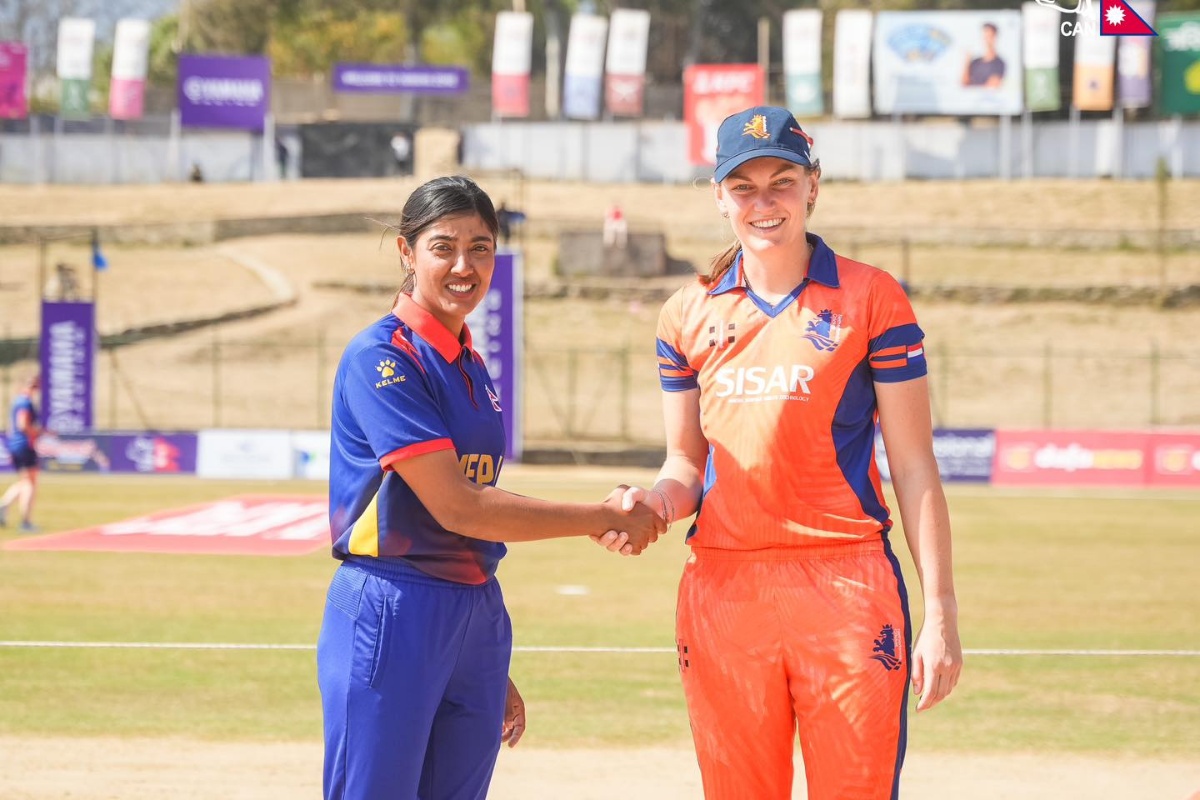 काठमाडौँ– त्रिकोणात्मक महिला टी२० आई सिरिजमा नेपालले नेदरल्यान्ड्सविरुद्ध टस जितेको छ।