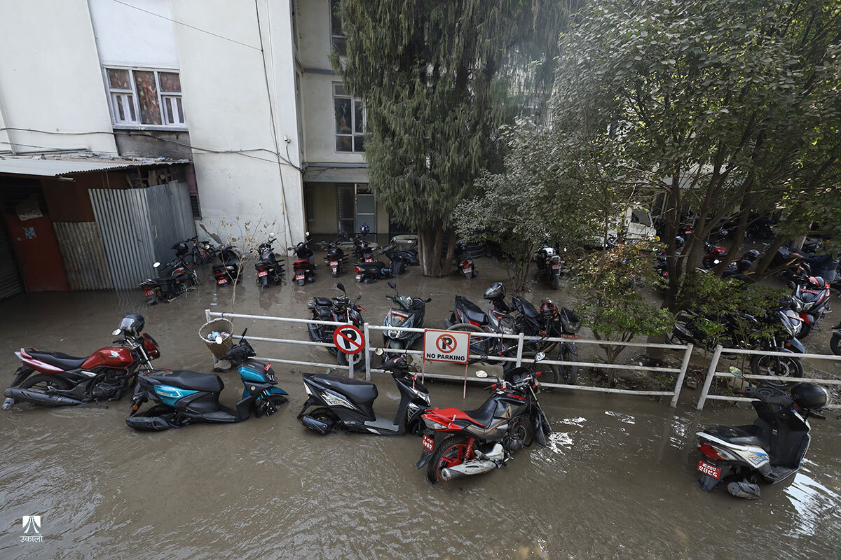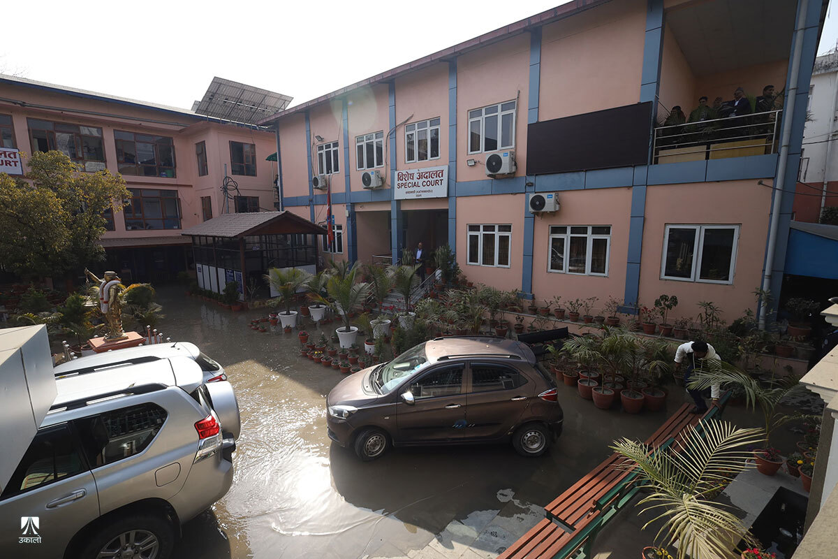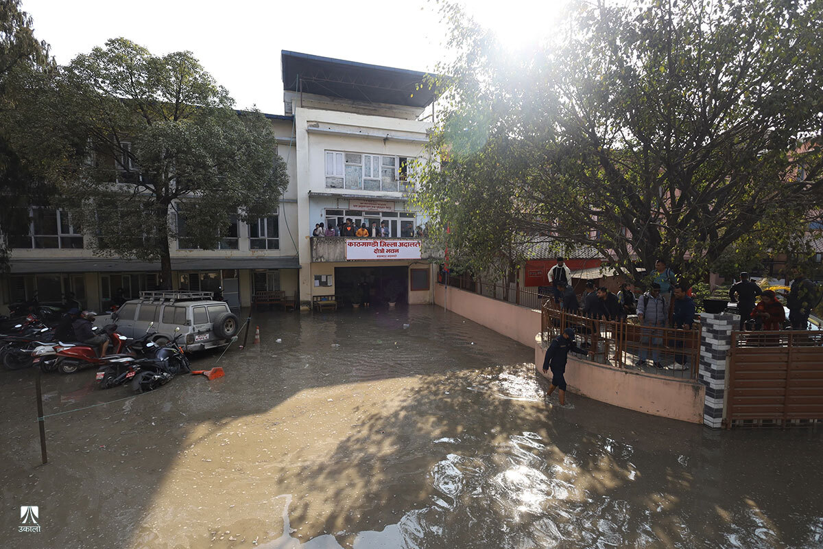 जिल्ला अदालतको दोस्रो भवन र विशेष अदालत परिसरभित्र पनि ढल पसेको छ।