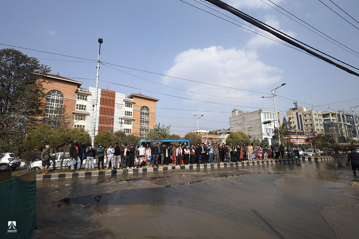 बुधबार दिउँसो विशेष अदालतअघि ढल सडकमै बग्न थालेपछि सवारीसाधन आवागमनमा अवरोध भएको हो। बानेश्वरबाट माइतीघरतर्फ आउने लेनमा गाडी गुड्न सकेका छैनन्।