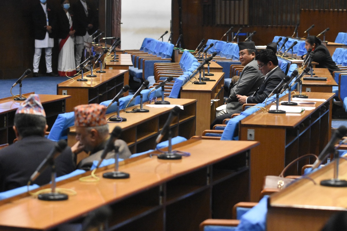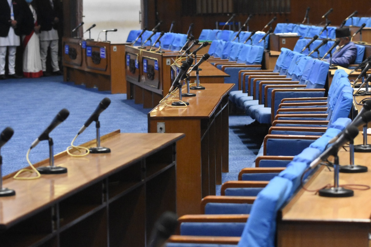 काठमाडौँ– सांसदको मुख्य जिम्मेवारी भनेको सदनमा उपस्थित भई विधि निर्माणमा भाग लिनु हो। तर संसद्का बैठकमा कुर्सी खाली राखेर सांसदहरू हाजिर गर्नासाथ बाहिरिने क्रम बढेको छ। जसका कारण सदन बैठकमा जनप्रतिनिधिको न्यूनतम संख्या नपुगेर बैठक स्थगन हुने गरेका छन्। प्रतिनिधिसभाको आइतबारकै बैठक ‘नेपाल नागरिकता (दोस्रो संशोधन) विधेयक, २०८१ माथि छलफल गरियोस्’ भन्ने प्रस्ताव निर्णयार्थ प्रस्तुत गर्दा गणपूरक संख्या नपुगेर स्थगन भएको थियो। त्यस्तै, मंगलबार पनि प्रतिनिधिसभा बैठकमा विशेष समय जारी रहँदा नै कुर्सी खाली राखेर अधिकांश सांसदहरू बाहिरिएका छन्। हेर्नुहोस् तस्वीरहरू: