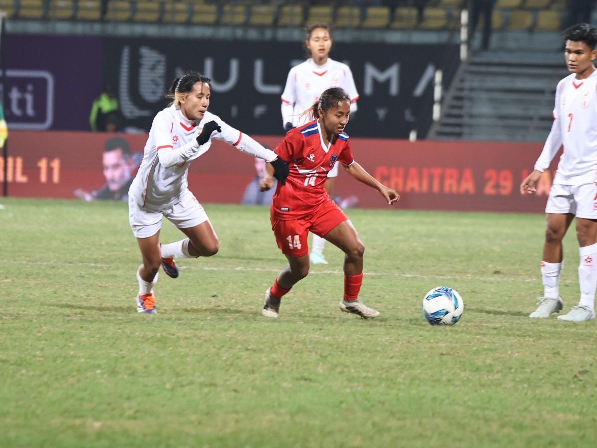 अन्तर्राष्ट्रिय महिला फुटबल च्याम्पियनसिपअन्तर्गत समूह चरणको अन्तिम खेलमा नेपाल र म्यानमारले २–२ गोलको बराबरी खेलेका छन्।