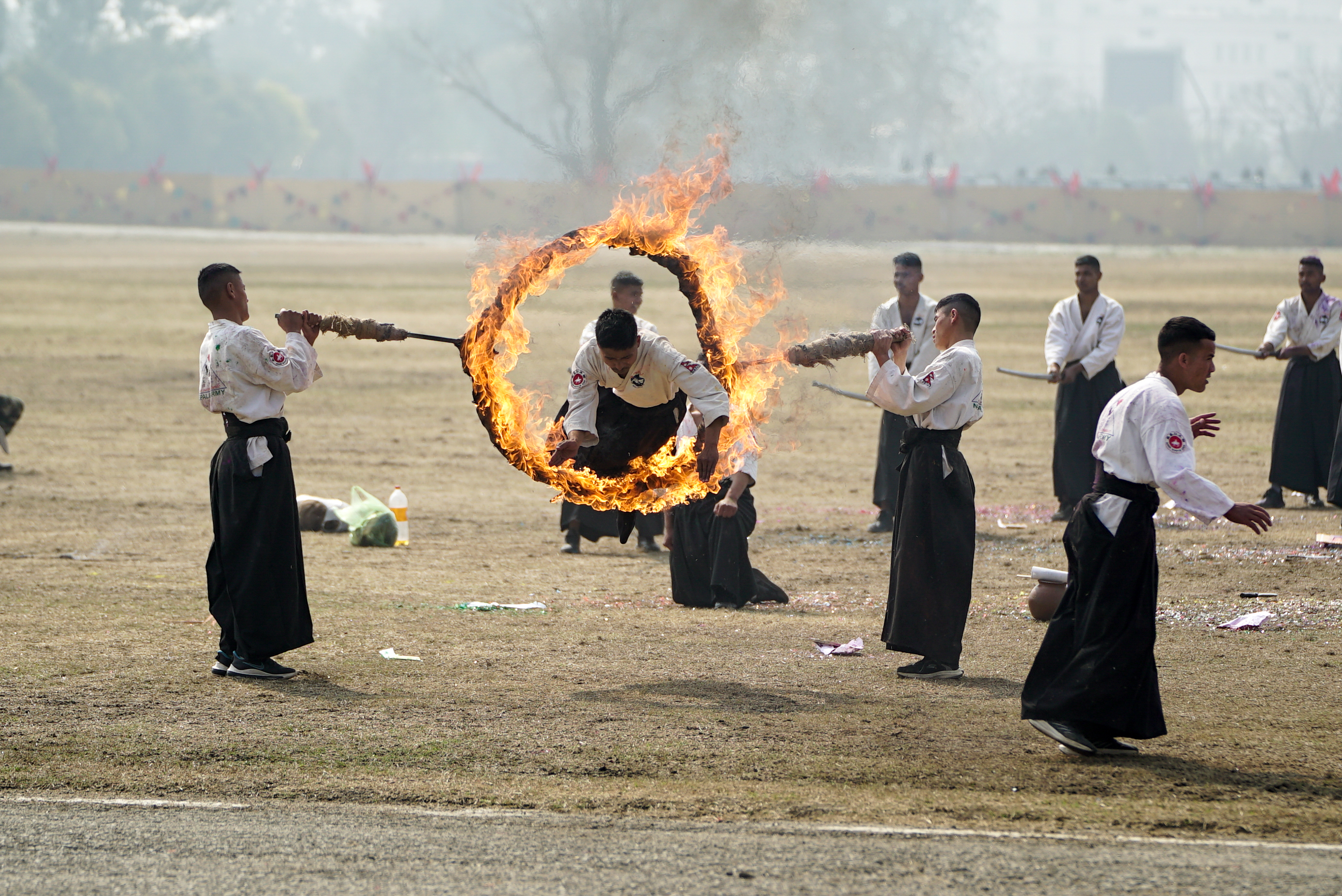 समारोहमा सेनाद्वारा विभिन्न रणकौशल, मार्चपास तथा परम्परागत वेशभूषा झल्कने विविध कला, नृत्य र सङ्गीतको धुन प्रदर्शन गरिएको थियो।