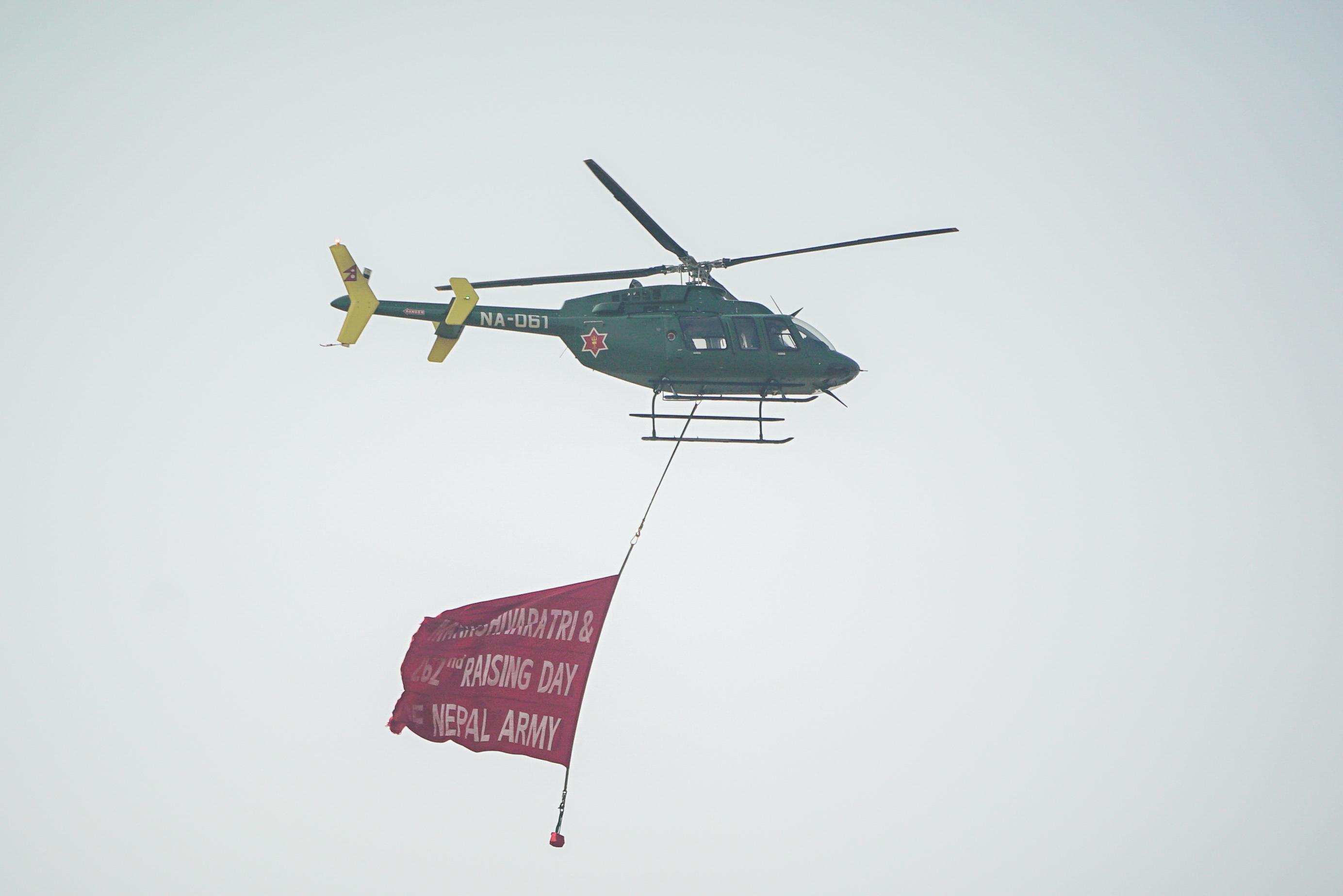 यस अवसरमा सेनाको हेलिकोप्टरमार्फत पुष्पवृष्टि गर्नाका साथै राष्ट्रिय झण्डा र ‘सेना दिवस–२०८१’ लेखिएको ब्यानर प्रदर्शन गरिएको थियो। त्यसका साथै सेनाले राइफल र तोपबाट महाशिवरात्रि बढाइँ तथा कवाज प्रस्तुत गरेको थियो।