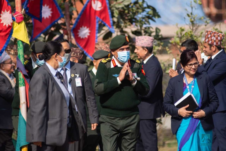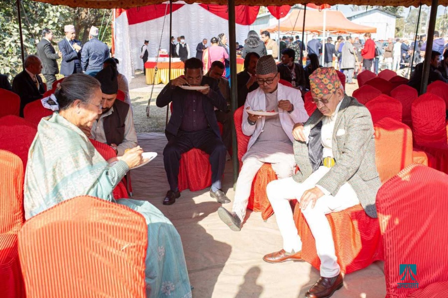 कान्तिपथस्थित आयोग परिसरमा आयोजित जलपान समारोहमा राष्ट्रपति विद्यादेवी भण्डारी, उपराष्ट्रपति नन्दबहादुर पुन, प्रधानमन्त्री शेरबहादुर देउवा, कामु प्रधानन्यायाधीश हरिकृष्ण कार्की, राष्ट्रियसभाका अध्यक्ष गणेशप्रसाद तिमिल्सिनालगायत सहभागी छन्।