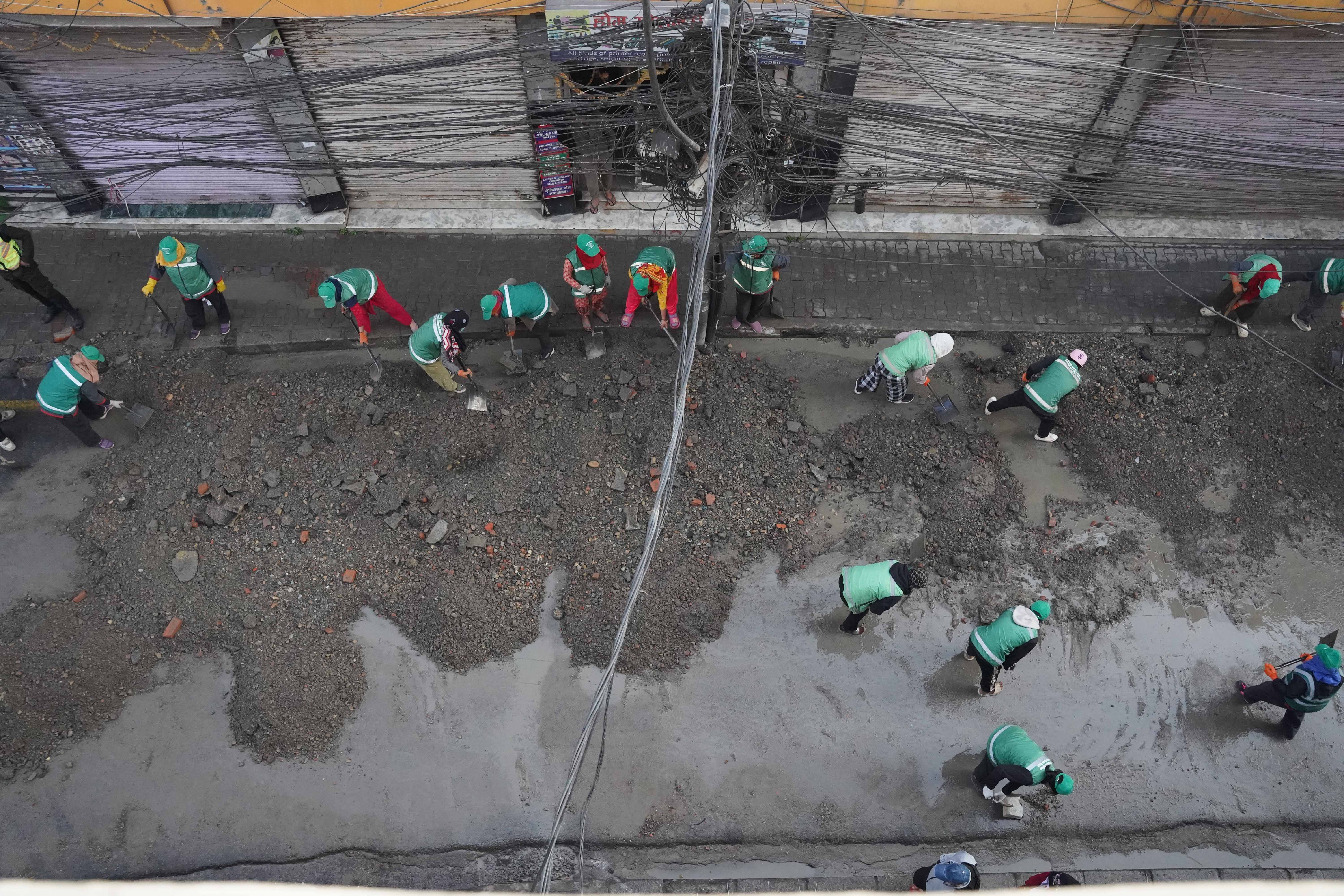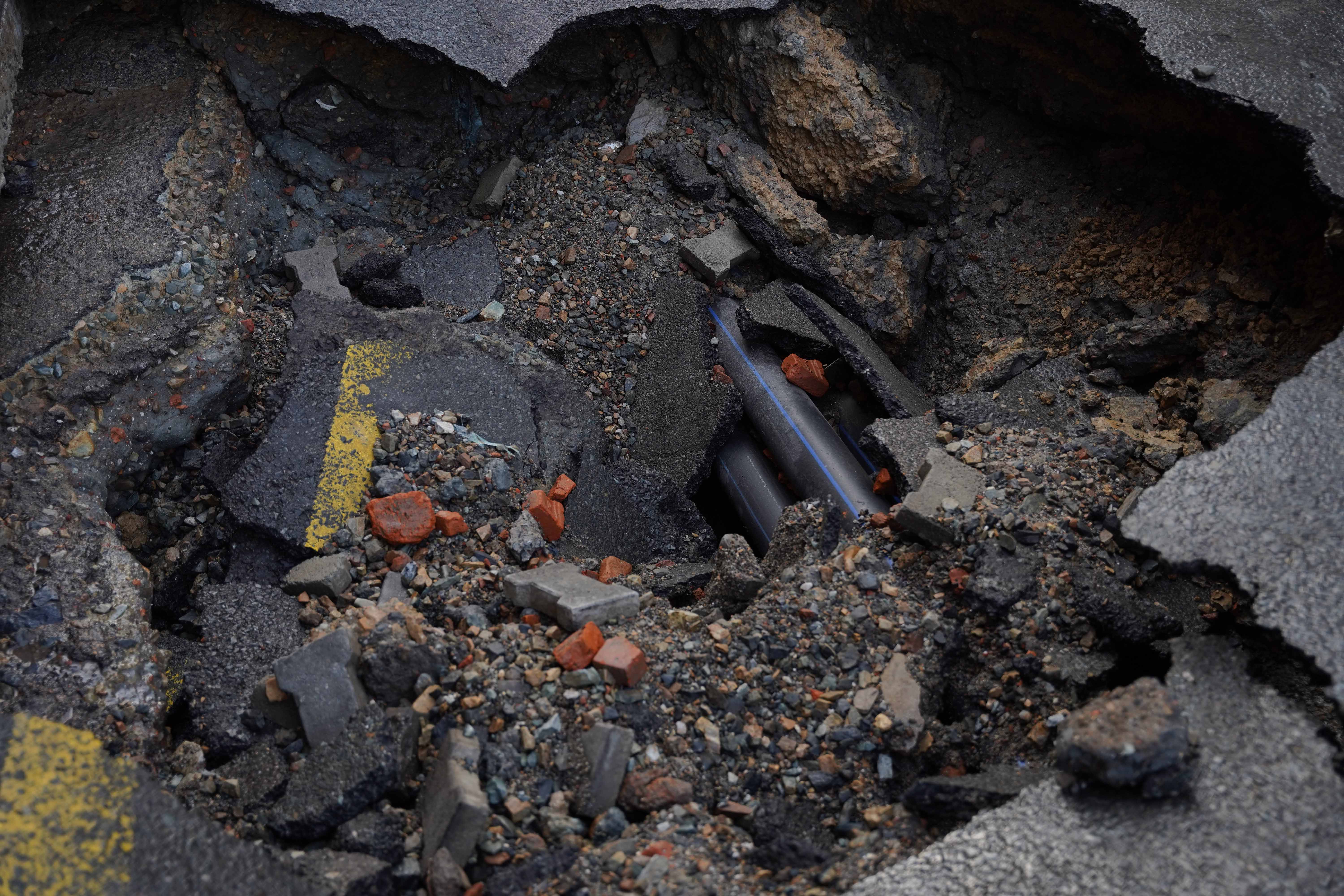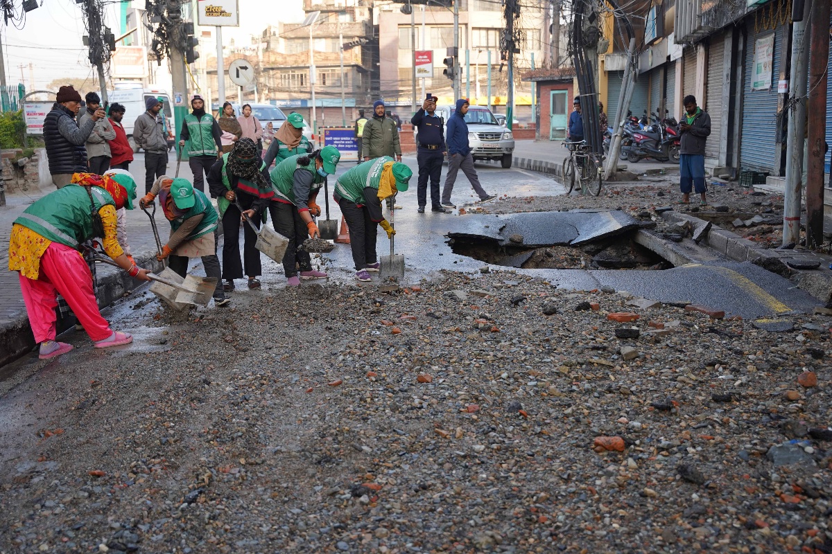 थापाथली चोकबाट प्रसूतिगृहतर्फ जाने सडकमा मंगलबार बिहान पाइप फुटेर पानी बाहिर निस्किँदा सडकसमेत भत्किएको छ। हिलो र गिट्टी छरिएका छन्।