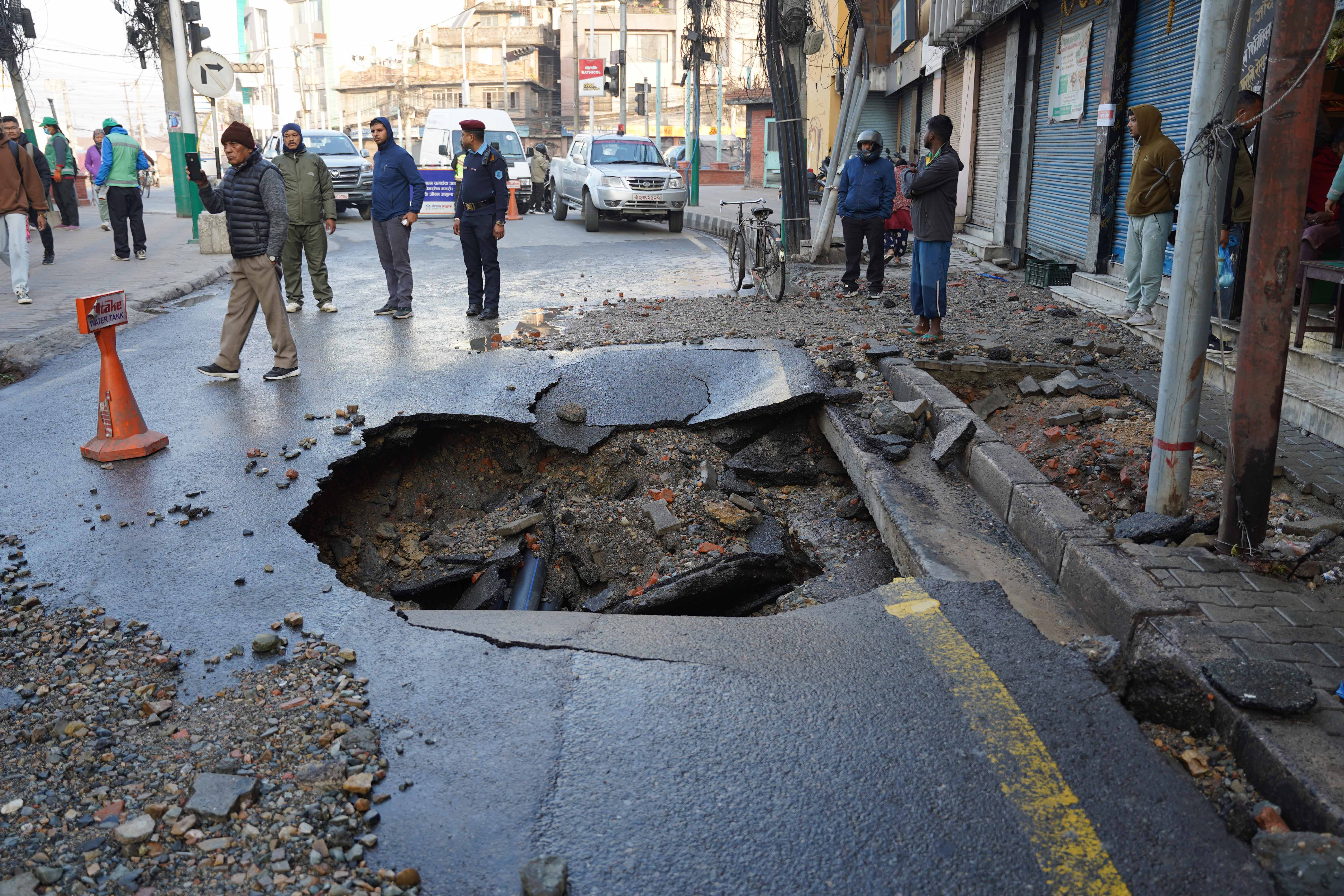 थापाथली चोकबाट प्रसूतिगृहतर्फ जाने सडकमा मंगलबार बिहान पाइप फुटेर पानी बाहिर निस्किँदा सडकसमेत भत्किएको छ। सडकपेटीमा पनि क्षति पुगेको छ। सडकभरि हिलो र ढुंगाका गिट्टी छरिएपछि सडक अवरुद्ध भएको छ ।