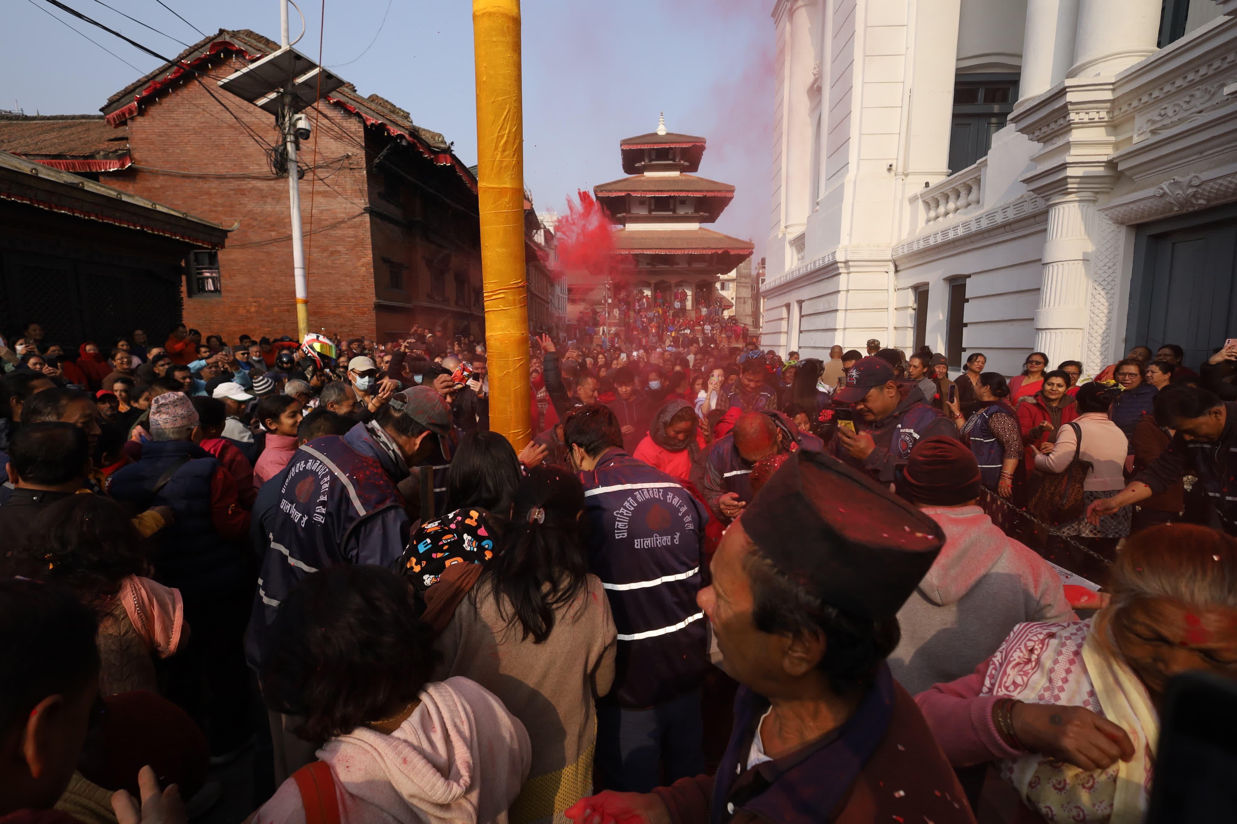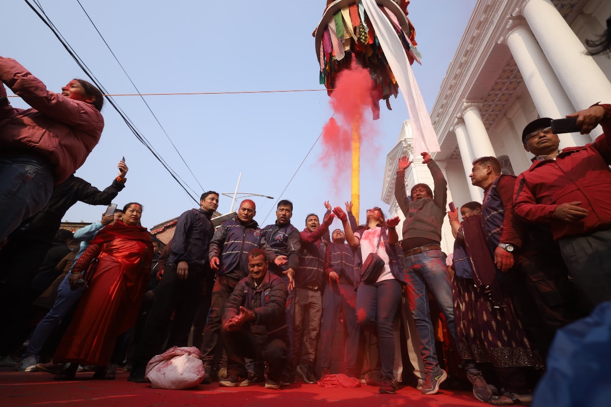 शुक्रबार बिहान रंगीचंगी ध्वजापताकासहितको तीनखण्डे चीर ठड्याइएको हो। यससँगै काठमाडौँ उपत्यकासहित मुलुकभर औपचारिक रूपमा होली पर्व शुरू भएको मानिन्छ।