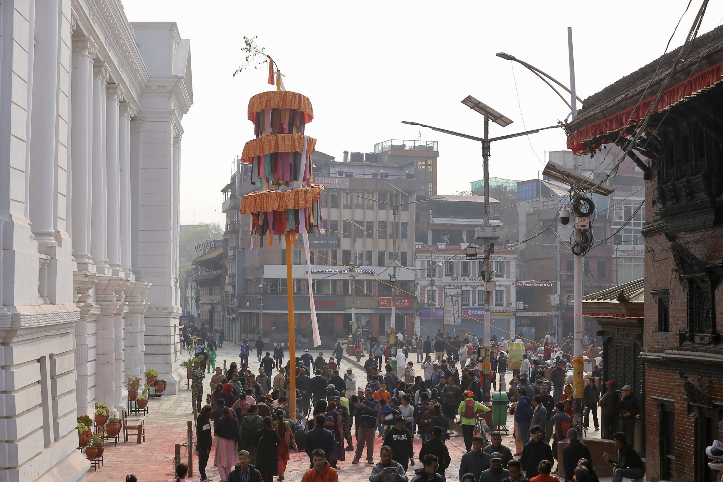 काठमाडौँ– काठमाडौँको बसन्तपुरमा होलीको चीर ठड्याइएको छ। शुक्रबार बिहान रंगीचंगी ध्वजापताकासहितको तीनखण्डे चीर ठड्याइएको हो।