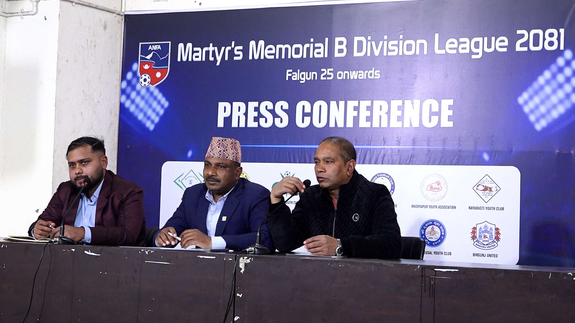 काठमाडौँ– अखिल नेपाल फुटबल संघ (एन्फा)को आयोजनामा यही फागुन २५ गतेदेखि राजधानीमा शहीद स्मारक ‘बी’ डिभिजन लिग फुटबल प्रतियोगिता हुने भएको छ।