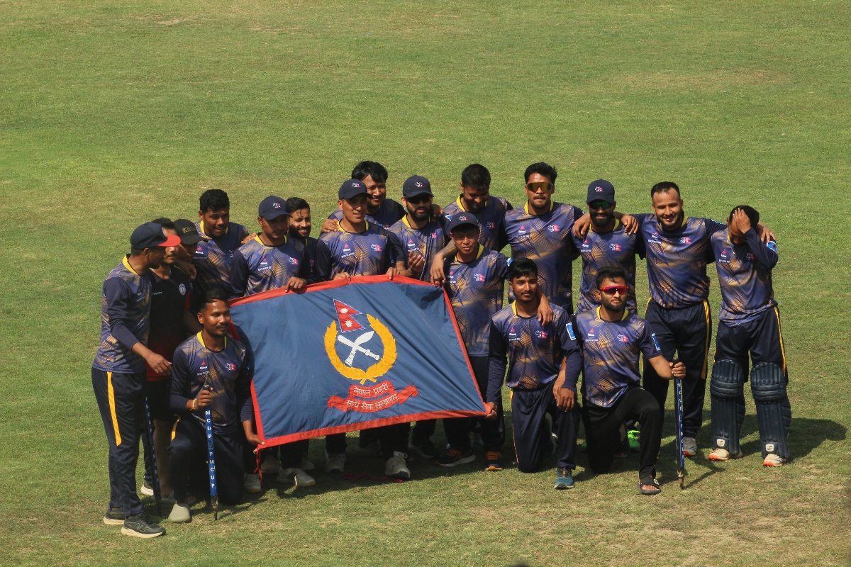 त्यसअघि भैरहवास्थित सिद्धार्थ क्रिकेट रंगशालामा टस हारेर ब्याटिङको निम्तो पाएको आर्मीले ४३ ओभरमा सबै विकेट गुमाउँदै १५४ रन बनाएको थियो। २५ रनमै ५ विकेट गुमाएको आर्मीका लागि कप्तान विनोद भण्डारी र बसीर अहमदले ७५ रन बढीको साझेदारी गरेका थिए।