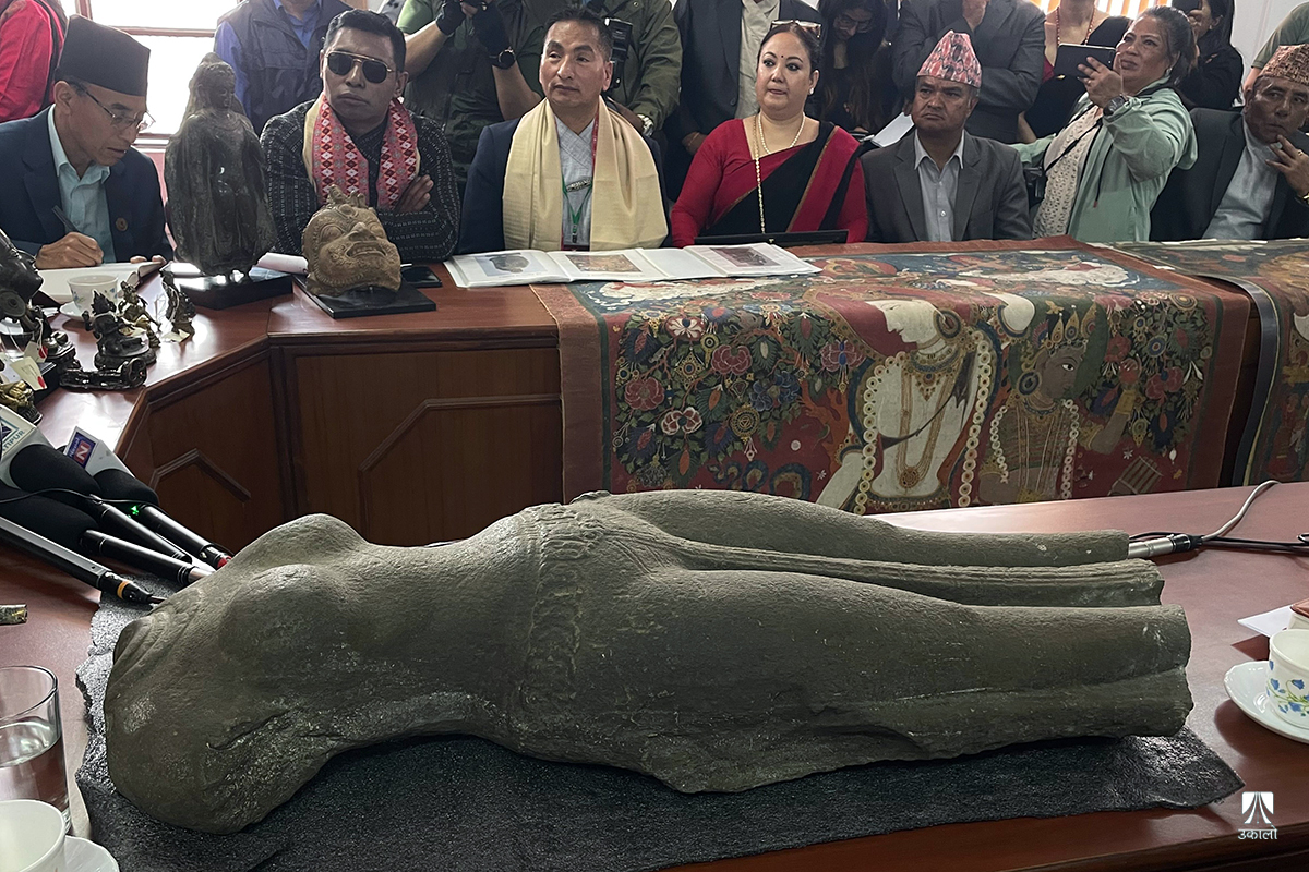 काठमाडौँ– विभिन्न समयमा चोरी भएका नेपाली २१ थान कलावस्तु अमेरिकाबाट फिर्ता ल्याइएको छ। इतुमबहालको तीन वटा पौभा चित्रकला, बुगंमतिस्थित प्रस्तरको बुद्ध मूर्ति, पाटनको गुइत चैत्यबाट हराएको मुछलिन्द बुद्धको मूर्ति, माटोको भैरवको मुकुन्डो, पार्वती/लक्ष्मीको प्रस्तरको मूर्तिसहित श्वेत तारा, बाल कृष्ण, तारा, काली, पद्मपाणि, कृति–मुख, जम्भला लगायतका कलावस्तु स्वेदश फिर्ता भएका हुन्। यसका साथै अन्य १५ धातुका मूर्ति पनि फिर्ता भएको आइतबार पुरातत्त्व विभागकी महानिर्देशक सौभाग्य प्रधानाङ्गले दिइन्।