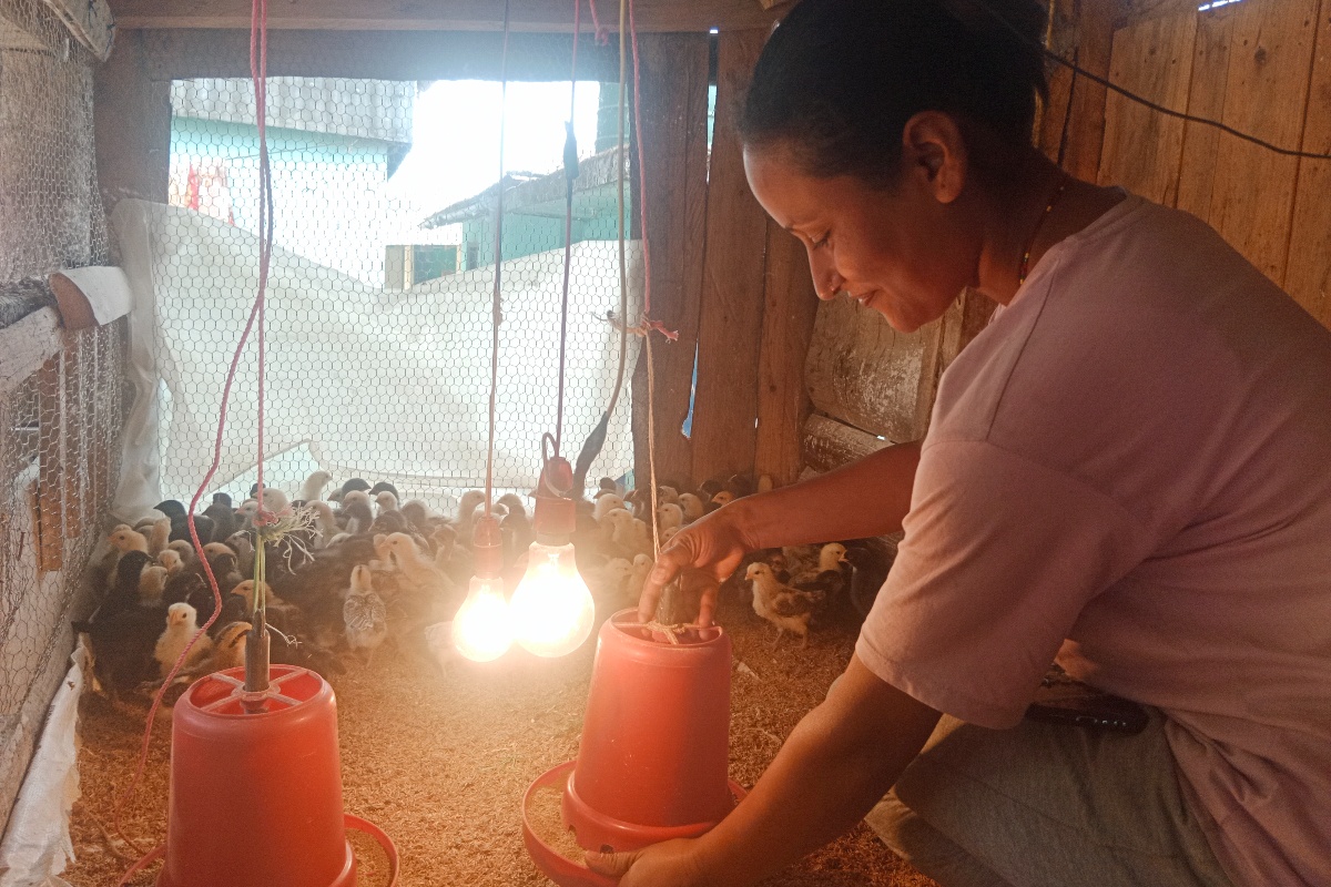 “गाउँमा केही गर्छु भन्ने सबैसँग लगानी गर्ने रकम हुँदैन। बिना ब्याजमा पैसा दिएपछि बाख्रा, कुखुरा पाल्न सजिलो भएको छ। तीन वर्षमा साँवा फर्काउने मात्र हो। ब्याज लाग्दैन,” कुखुरालाई दाना दिँदै उनले भनिन्।