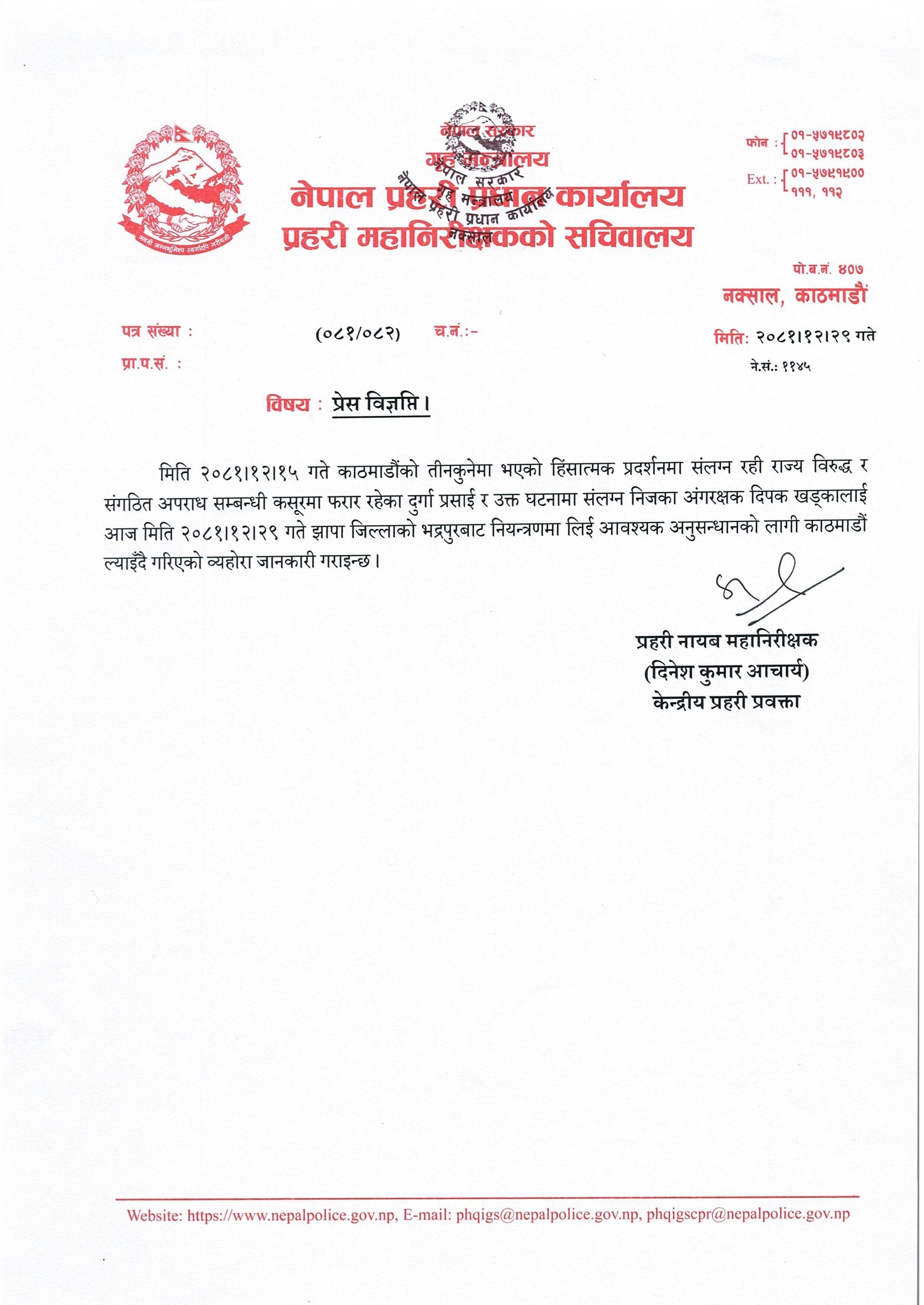 काठमाडौँ– तीनकुनेको हिंसात्मक प्रदर्शनपछि फरार दुर्गा प्रसाईं झापामा पक्राउ परेका छन्।