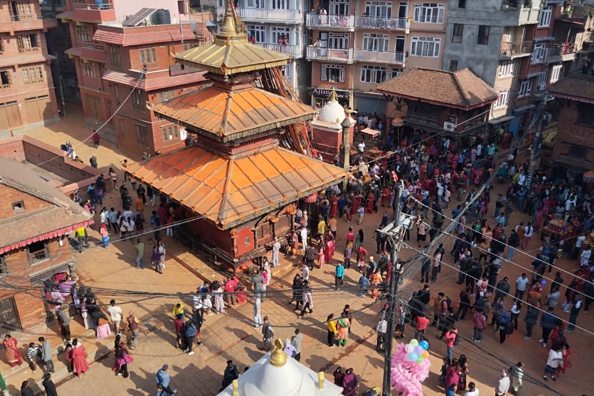 भक्तपुर– मानिसको भिड, भिडमा सबैको टाउको, अनुहार, शरीर फुस्रो अबिरैअबिरले राताम्मे। अगाडि हात–हातमा धपक्क बलेको चिरागका समूह। त्यसपछि धिमे र मुस्या बाजा बजाउने अर्को समूह, आ–आफ्नो टोलका देवीदेवतालाई विराजमान गराइएका खट बोकेर टोलटोल घुम्दै बालबालिका, युवायुवतीदेखि ज्येष्ठ नागरिकसमेत बिहानै जात्राको भिडमा सिन्दुर खेल्दै रमाउँदै भव्य रूपमा मध्यपुरथिमिका बासिन्दाले सुथसिया अर्थात् बिहानीको जात्रा मनाएका छन्।