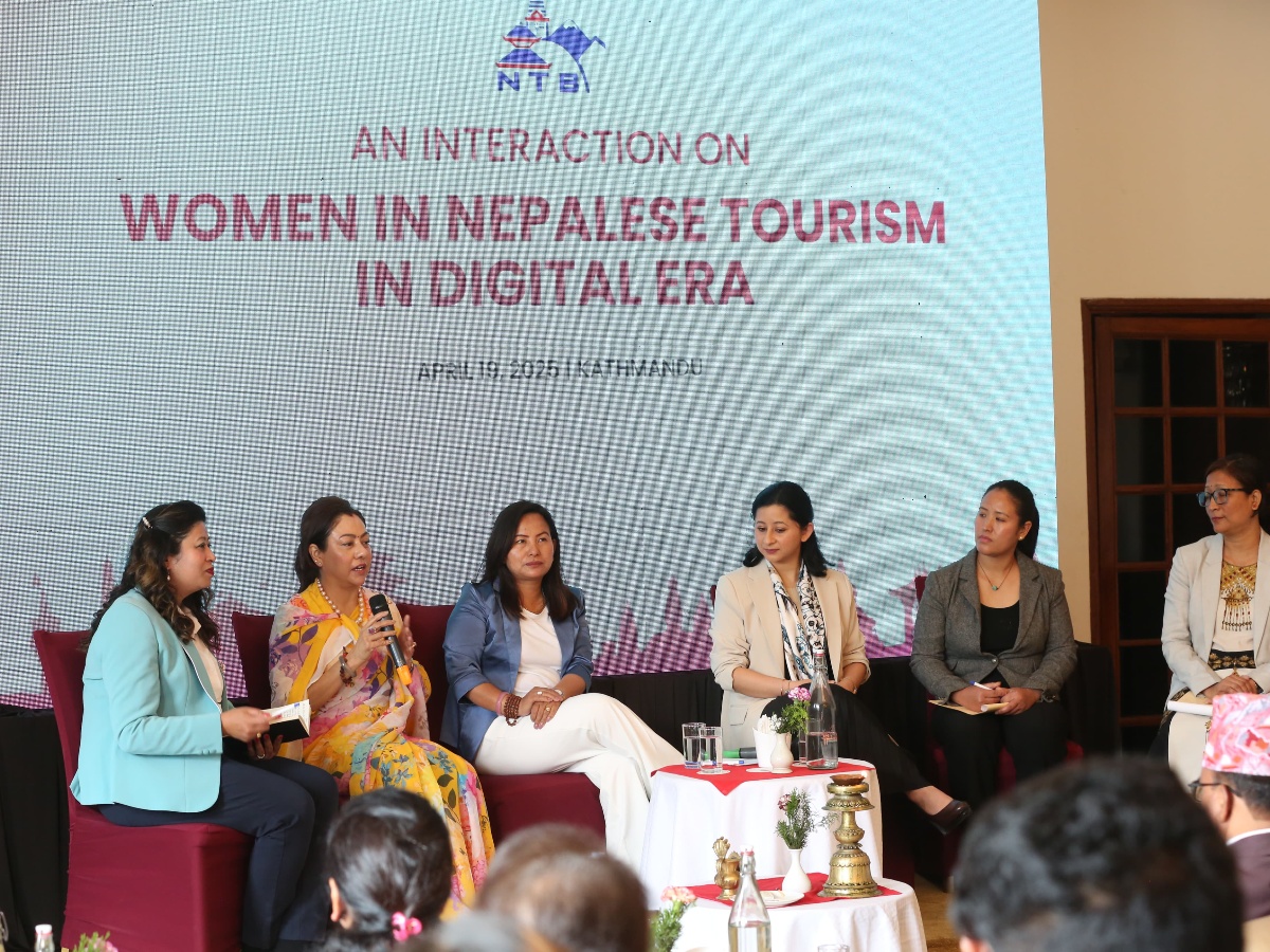 नेपाल पर्यटन बोर्डले ललितपुरको होटल हिमालयमा आयोजना गरेको ‘डिजिटल युगमा नेपाली पर्यटनमा महिला’ विषयक अन्तर्क्रिया गरेको वक्ताहरूले ‘डिजिटल युगमा महिला उद्यमशीलता नै पर्यटनको मेरुदण्ड बन्ने’ बताएका हुन्।
