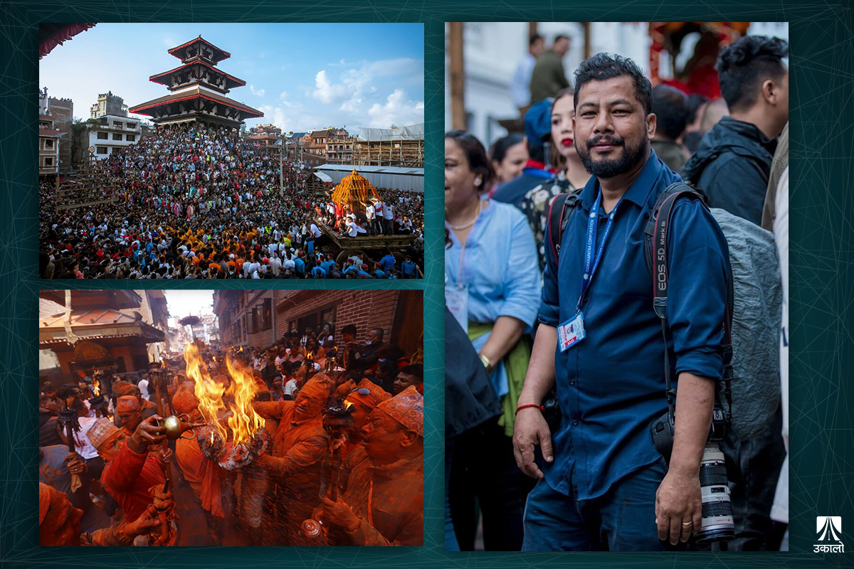 रवन भक्तपुरको सूर्यविनायकमा फ्रेम पसल चलाउँछन्। तर जात्रा हुँदा पसल नै बन्द गरेर फोटो खिच्न पुग्छन्। एक दशकभन्दा बढी समयदेखि फोटोग्राफी गरिसकेका उनी जात्रा र पर्वले मानिसमा सामुदायिक भावना विकास गर्ने बताउँछन्। “घर–अफिसमा व्यस्त रहने दैनिकीलाई खुकुलो पार्ने काम नै जात्राले गर्छ,” उनी भन्छन्, “त्यो बेला मानिसहरूका अनुहारमा झल्कने चमकलाई म अभिलेखमा राख्न रुचाउँछु।”