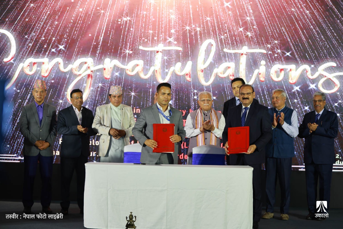 काठमाडौँ– नेपाल र भारतबीच अन्तर्देशीय प्रसारण लाइन विस्तारमा महत्त्वपूर्ण सम्झौता भएको छ। ऊर्जा, जलस्रोत तथा सिँचाइमन्त्री दीपक खड्का र दुईदिने भ्रमणका लागि मंगलबार नेपाल आएका भारतीय भारतका विद्युत् र आवास तथा शहरी मामिलामन्त्री मनोहरलाल खट्टरको उपस्थितिमा दुई देशबीच ऊर्जा क्षेत्रको विकासका लागि महत्त्वपूर्ण सम्झौता भएको हो।
