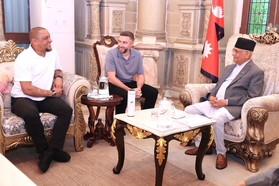 काठमाडौँ– प्रधानमन्त्री केपी शर्मा ओली र ब्राजिलका चर्चित फुटबल खेलाडी रोबर्टो कार्लोसबीच प्रधानमन्त्री तथा मन्त्रिपरिषद्को कार्यालय, सिंहदरबारमा आज भेटघाट भएको छ।