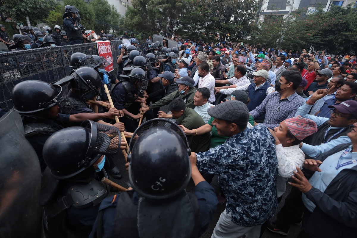 शिक्षकले निषेधित क्षेत्र तोड्न खोजेपछि भएको झडपमा शिक्षक, पत्रकार र प्रहरीसहित २६ जना घाइते भएको प्रहरीले जनाएको छ।