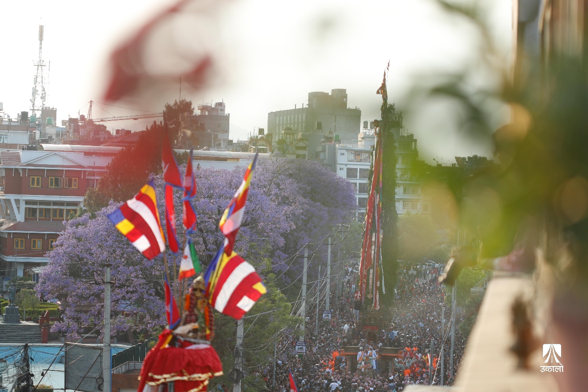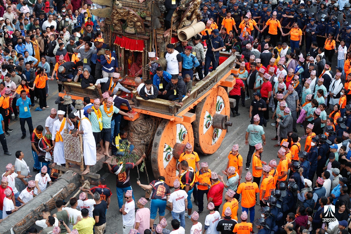 काठमाडौँ– वर्षा र सहकालका देवता रातो मत्स्येन्द्रनाथलाई विधिवत् रूपमा रथारोहण गरेर यस वर्षको रातो मत्स्येन्द्रनाथको जात्रा शुरू गरिएको छ। मत्स्येन्द्रनाथको मूर्तिलाई ललितपुरको त:बहालबाट खटमा राखेर पुल्चोकमा बनाइएको रथमा विराजमान गराइपछि मत्स्येन्द्रनाथको रथ तानी जात्रा शुरू गरिएको हो। मत्स्येन्द्रनाथको रथलाई बिहीबार पुल्चोकबाट गा:बहाल पुर्याइएको छ। हरेक वर्ष वैशाख शुक्ल प्रतिपदादेखि असार शुक्ल चौथीसम्म चल्ने यो जात्रा देशकै लामो रथ जात्रा हो। रातो मत्स्येन्द्रनाथको जात्रा विभिन्न किंवदन्तीमा आधारित छ। वैशाख शुक्ल प्रतिपदाको दिन रथ तानेर शुरू हुने जात्रा असार चौथीमा राष्ट्रप्रमुखबाट भोटो देखाएर विधिवत् रूपमा समापन हुन्छ। त्यसैले यसलाई भोटो जात्रा पनि भन्ने गरिन्छ। हेर्नुहोस् तस्वीरहरू :
