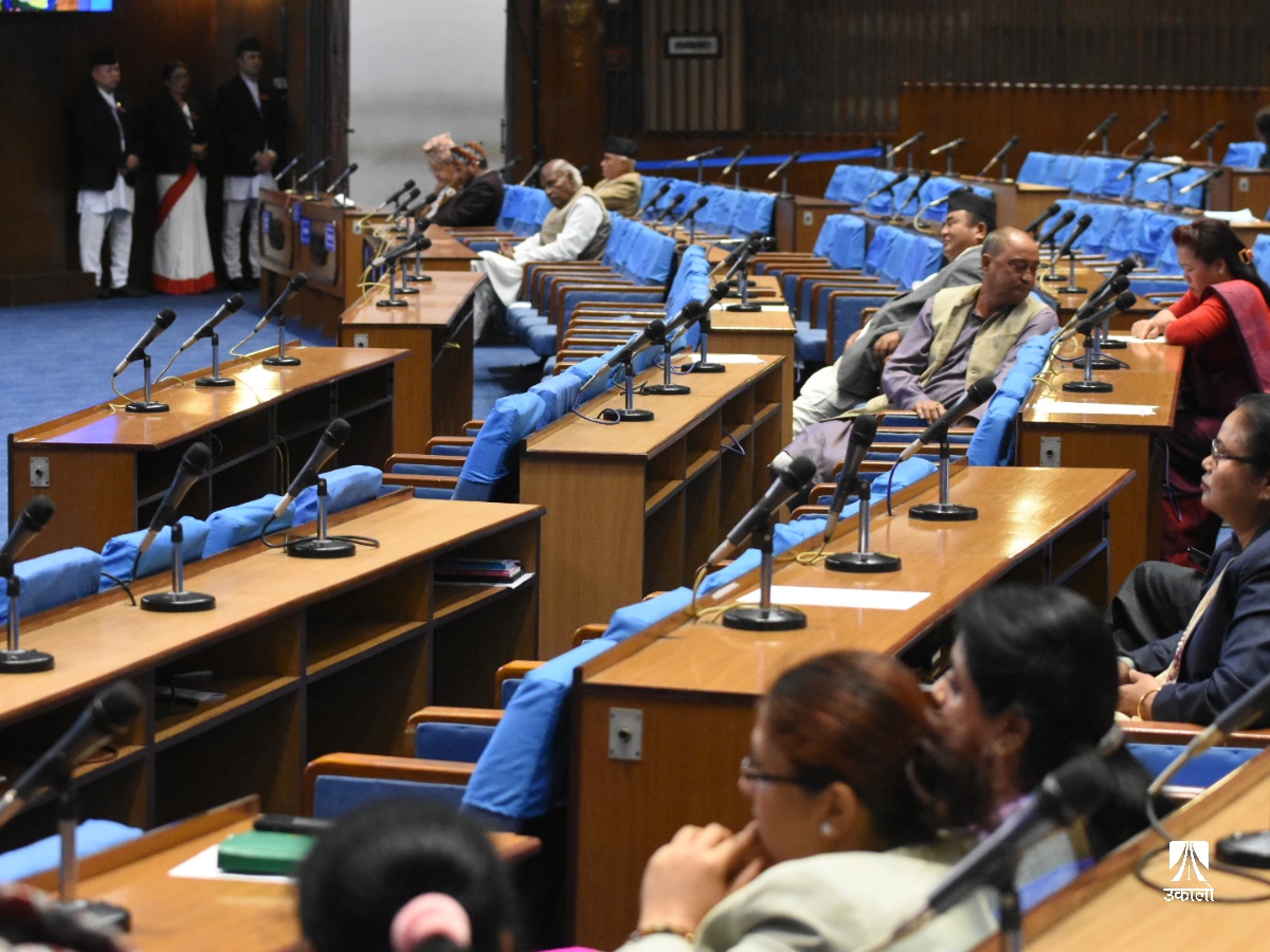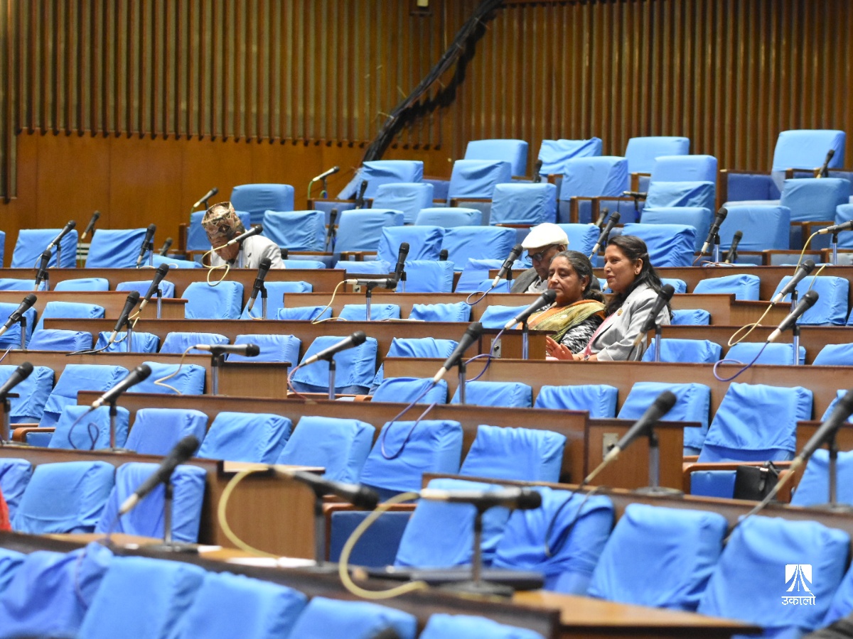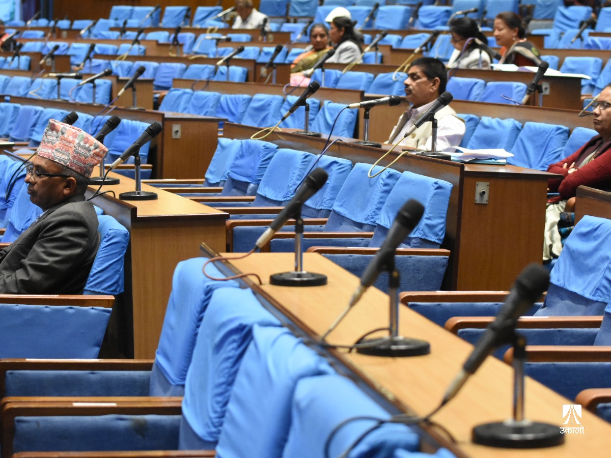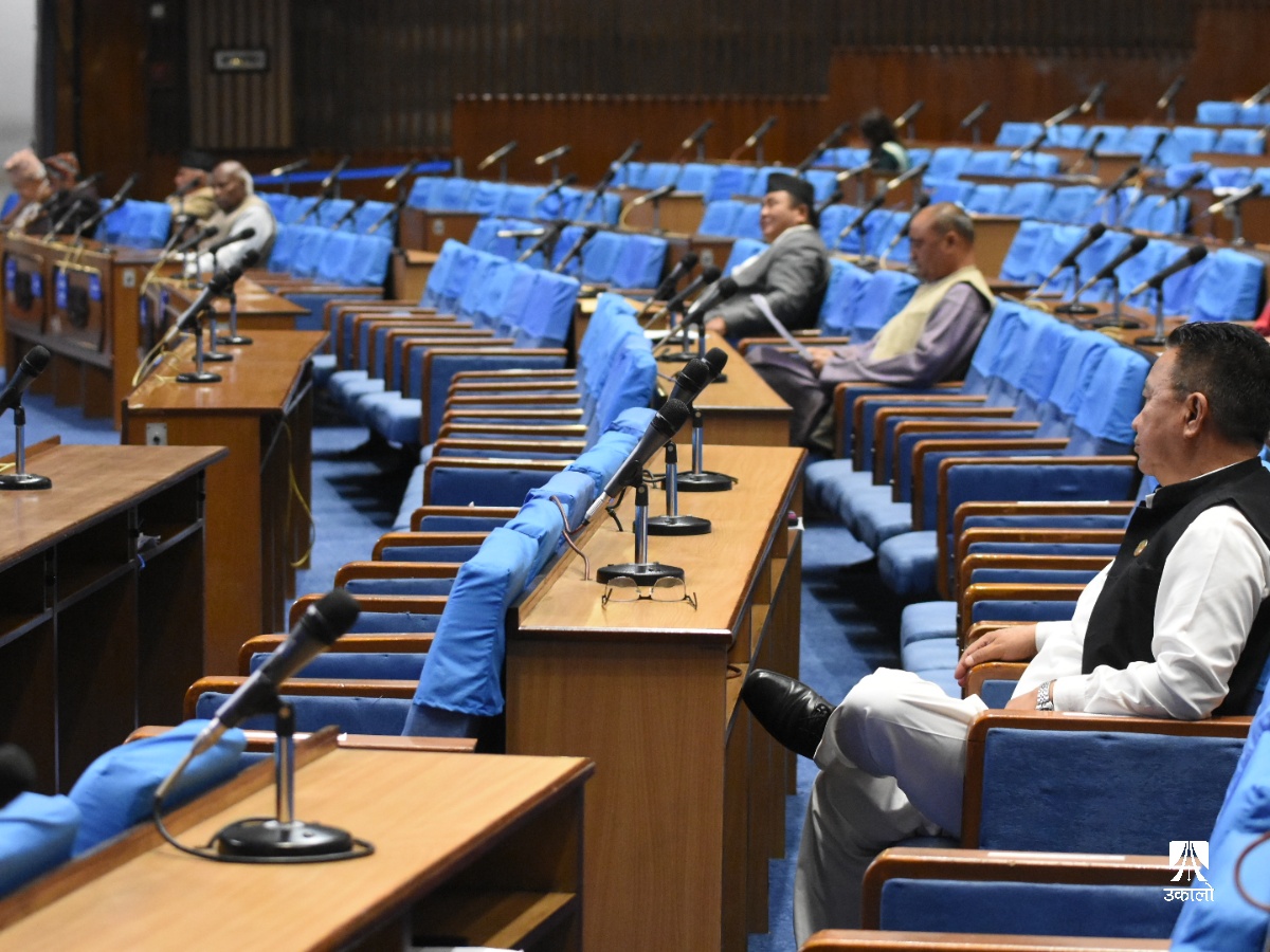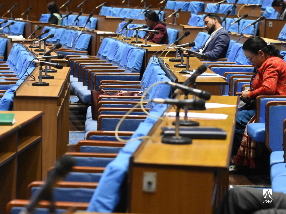 प्रतिनिधिसभाको मंगलबारको बैठकमा आर्थिक वर्ष २०८२/८३ को सरकारको वार्षिक नीति तथा कार्यक्रममाथिको छलफल चलिरहँदा कुर्सी खाली राखेर अधिकांश सांसद बाहिरिएका छन्।