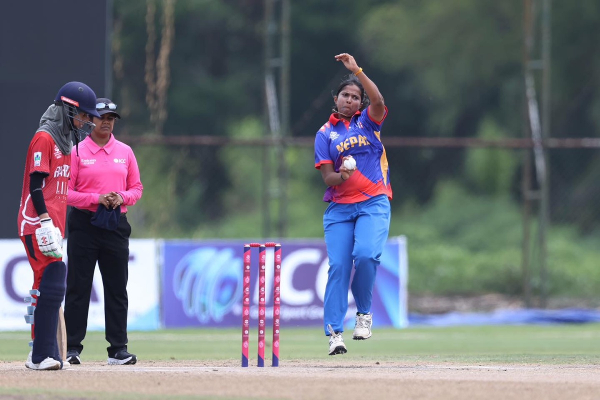 त्यसअघि बहराइनले कप्तान रसांगिकाको ३४ रनको मद्दतमा ४१ रन बनाएको थियो। नेपालकी पूजा महतोले १ विकेट लिइन्।