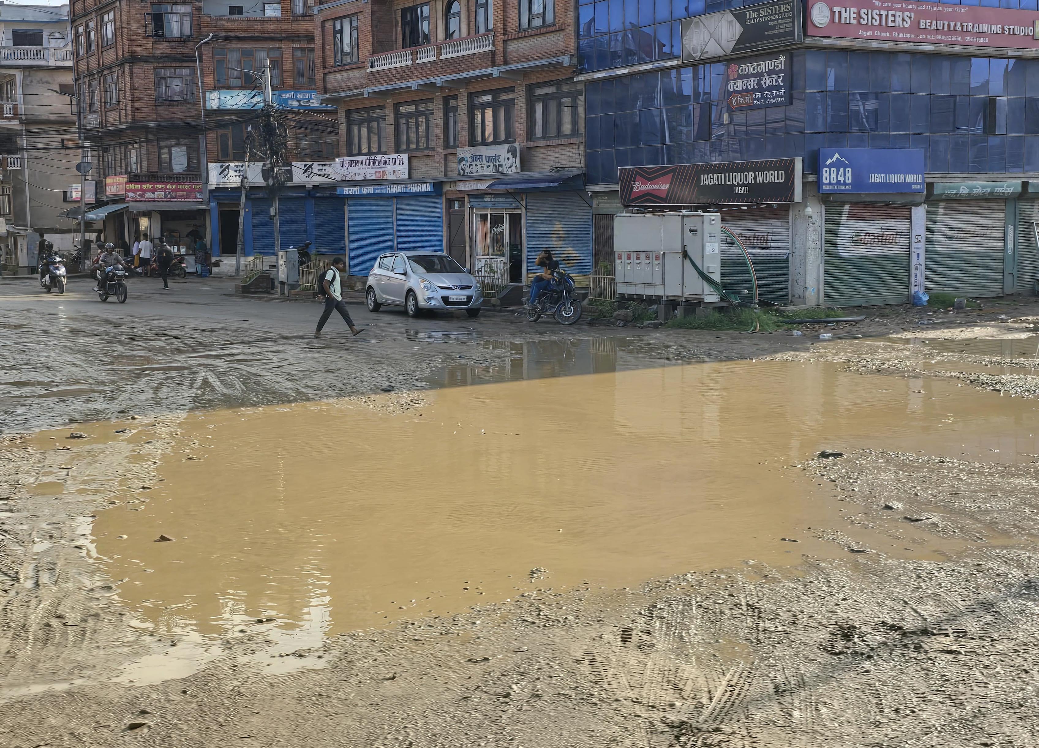 सूर्यविनायक–साँगा र साँगा–धुलिखेल गरी दुई खण्डमा सडक विस्तार भइरहेकामा सोमबार राति परेको पानीका कारण सडक हिलाम्मे भएको हो।