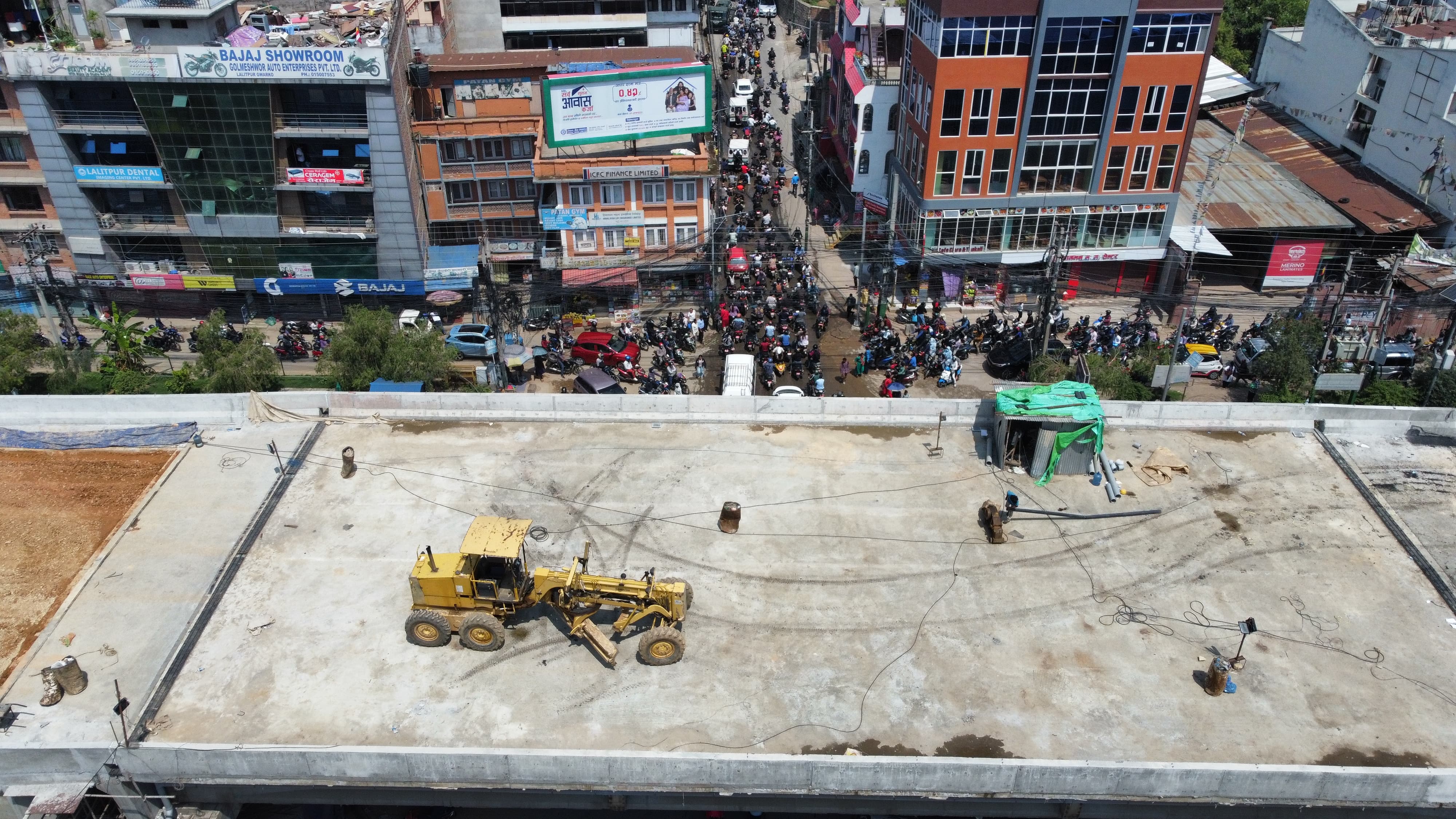 अहिले ओभरपासमा पेन्टिङ, ट्राफिक साइन र कालोपत्रेको काम भइरहेको छ। मौसमले साथ दिए जेठ मसान्तभित्र ओभरपास सञ्चालनमा ल्याउने गरी काम भइरहेको छ।