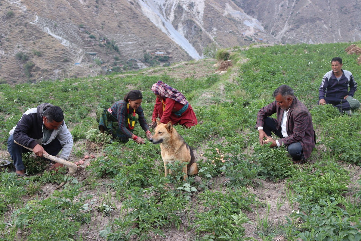 खत्याड गाउँपालिका–५ का अनन्त जौजी, भानुभक्त रावल र जुम्लाको कनका सुन्दरी गाउँपालिका–३ का बमबहादुर बुढाले सामूहिक आलुखेती गरेका छन्।