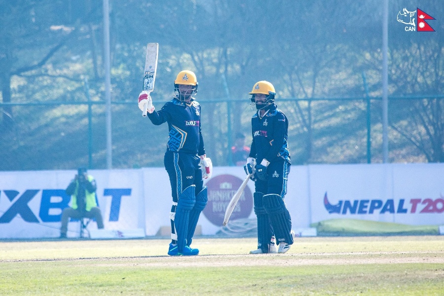 उनले ६३ बलमा ५ चौका र ४ छक्का प्रहार गरे। यस्तै, कुशल भुर्तेलले १७ बलमा २ चौका र १ छक्कासहित २६ रन बनाए। कप्तान दीपेन्द्रसिहं ऐरी १६, विपुल शर्मा ११, अनिल शाह ६, गुलशन झा ४ र उन्मुक्त चन्द २ रनमा आउट भए। विराटनगरका लागि नन्दन यादव, हुसेन तलात, शाहब आलम, आन्द्रे म्याकार्थी र सिकन्दर राजाले समान १/१ विकेट लिए।