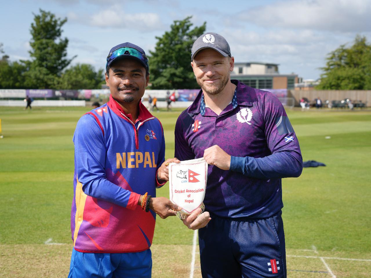 स्कटल्यान्डको डुन्डेस्थित फोर्टहिल क्रिकेट मैदानमा जारी खेलमा टस हारेर पहिला ब्याटिङको निम्तो पाएको घरेलु टोली स्कटल्यान्डले निर्धारित ५० ओभरमा ७ विकेट गुमाएर २९६ रनको योगफल बनायो।